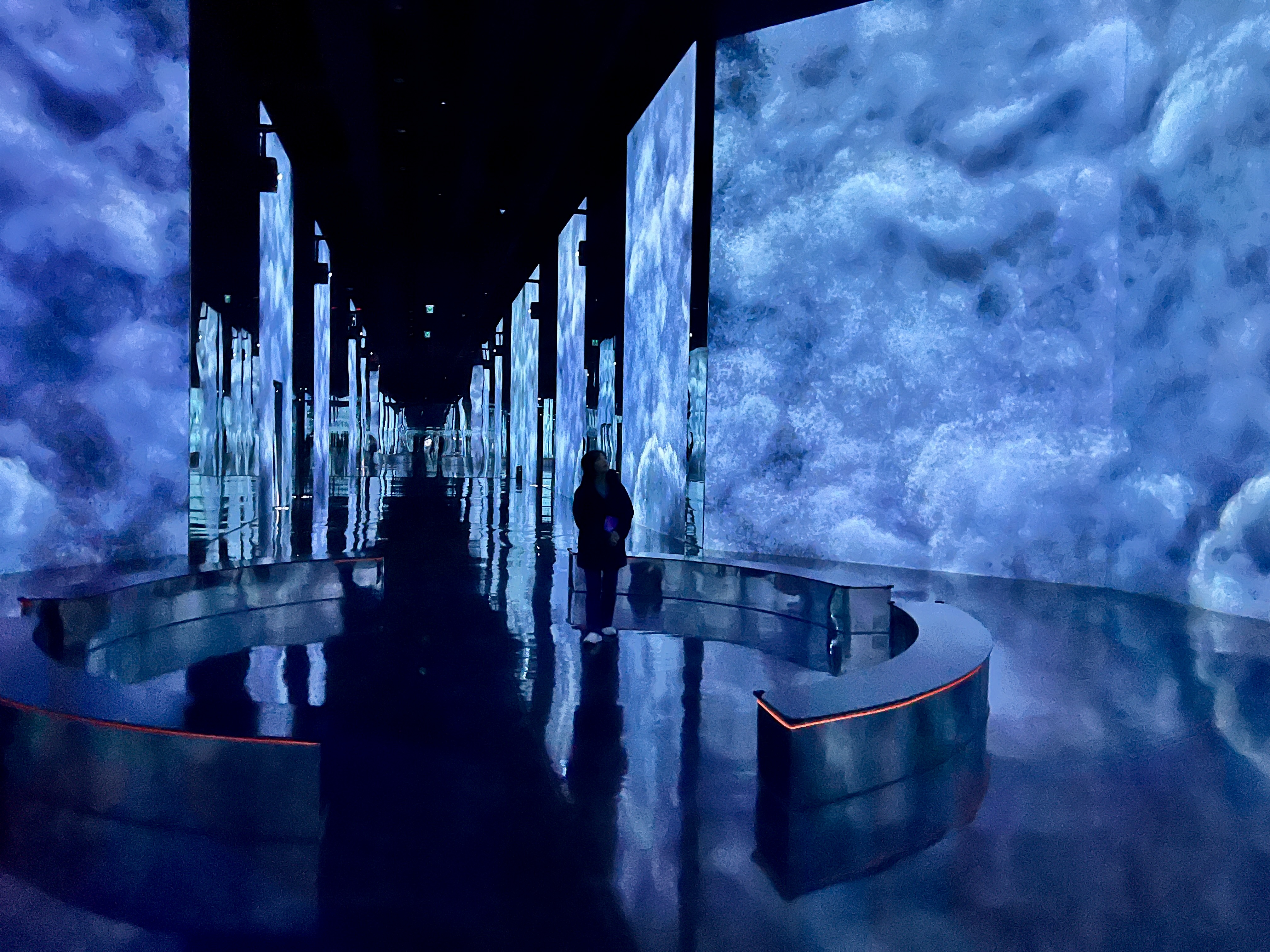 뮤지엄 헤이의 전시 공간을 관통하는 대형 광장에서는 착시와 거울을 활용한 연출로 무한하게 펼쳐지는 광활한 공간을 경험할 수 있답니다. 이 광장을 중심축으로 관람 동선도 고안했는데요. 한 방향이 아닌 여러 방향으로 동선을 설계해 관객이 자유롭게 전시 공간을 거닐며 작품을 만끽할 수 있도록 했어요. 여기에 주제에 맞춰 음향과 조향에 차이를 둬서 몰입감을 한층 온전하게 구현했습나다.