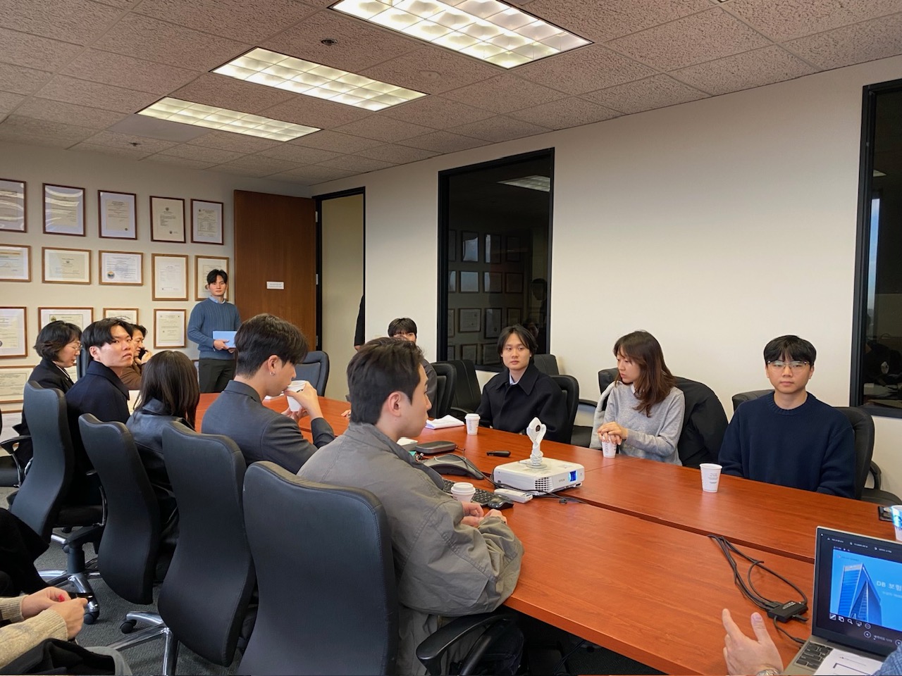 애너하임에 위치한 DB손해보험 LA 지점 방문은 한국 보험사의 미국 진출에 대한 현황과 운영 방식에 대해 안내하는 시간이었습니다. 미주사업본부의 정경진 본부장님과 이태훈 부장님 및 미주기획파트의 직원들의 환대로 시작하여, 당사의 영문 소개영상 및 미국 내 사업에 대한 브리핑이 있었습니다. 이후, 대학생들은 미국 내 국내 손보사의 미국 시장 진출 및 국내 시장과의 다른 해외 영업 환경에 깊은 관심을 보이며 활발히 질문을 던졌습니다.
