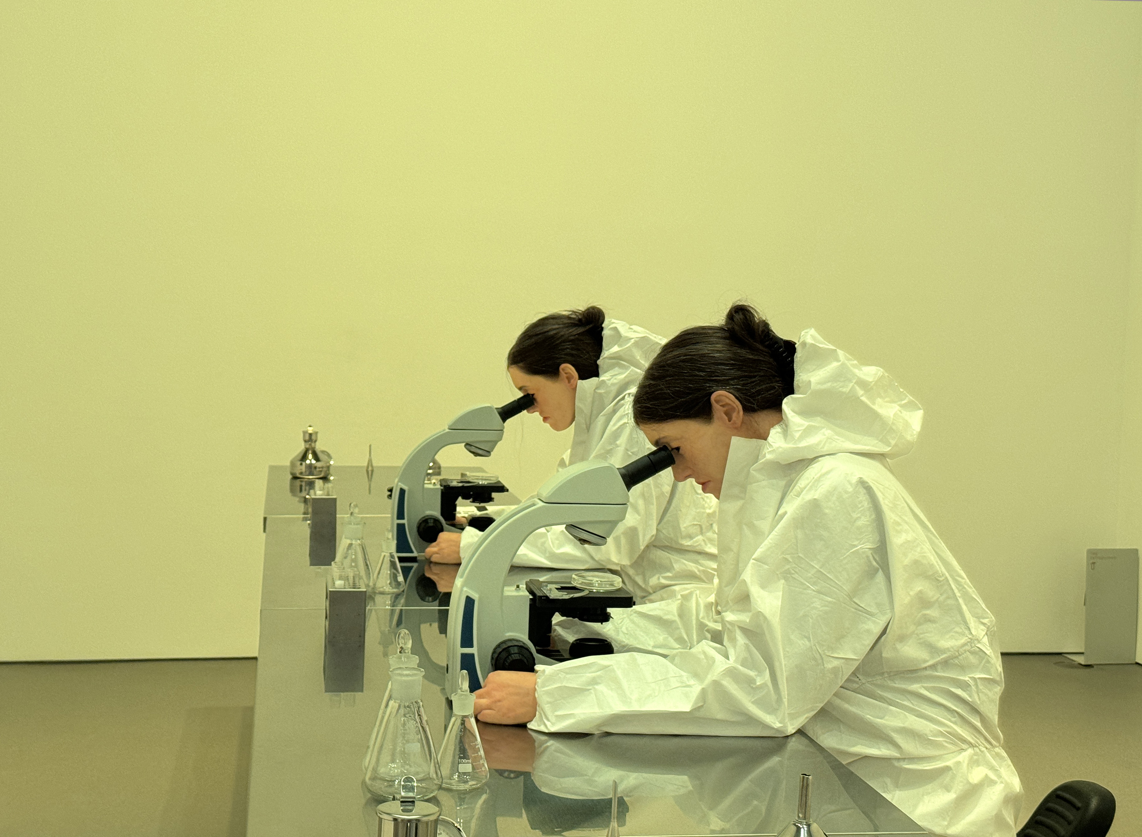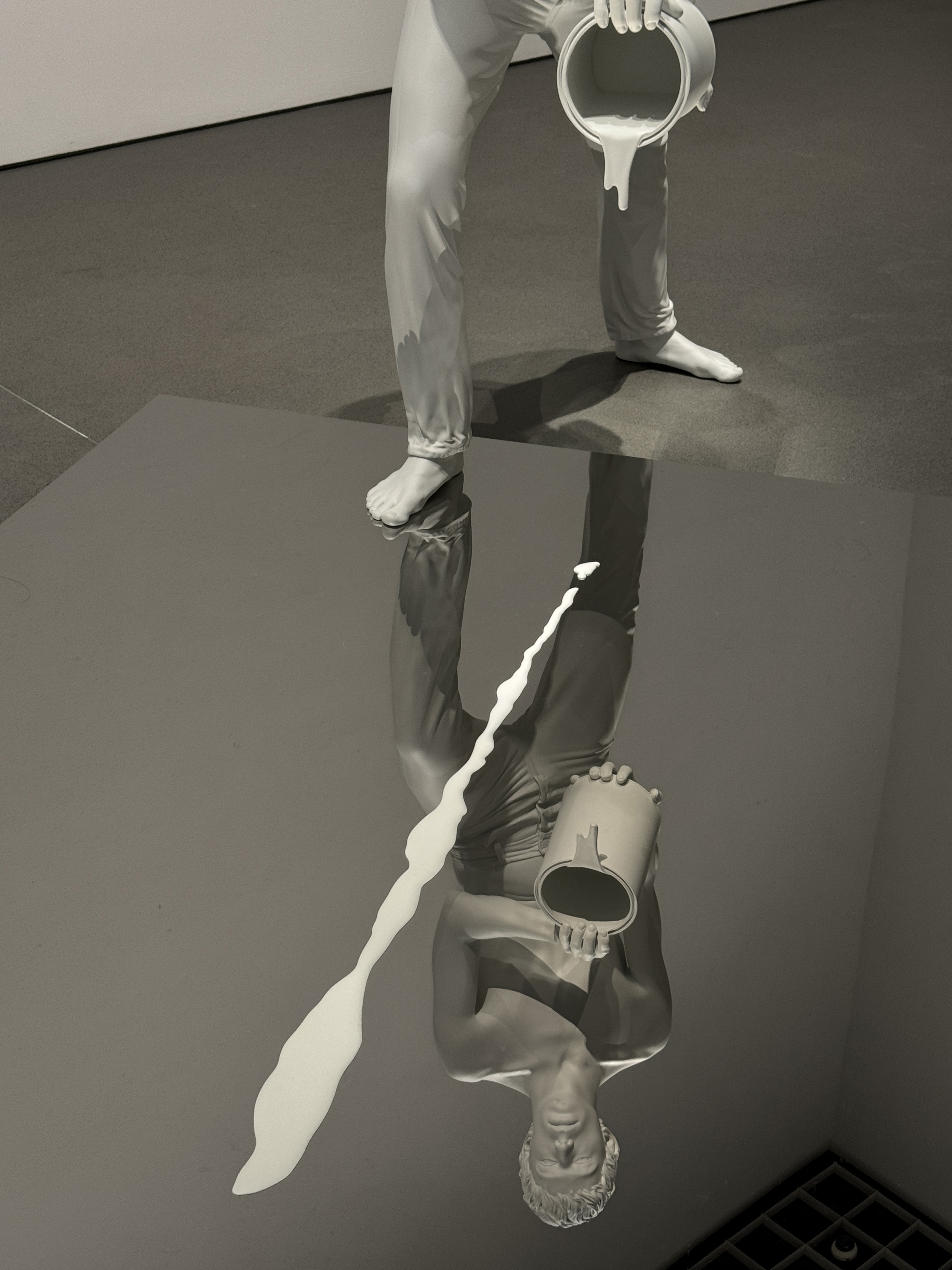 투명 커튼을 지나면 작업이 한창인 작가들의 아틀리애가 등장합니다. 특이하게도 거울로 이루어진 작가들의 캔버스는 인물 조각을 비롯해 방문자 모두와 주변 공간을 반사함으로써 조각, 회화, 작품, 공간, 관람객 사이의 경계를 무너뜨려 같은 공간에 모두가 동시에 존재하는 것과 같은 느낌을 심어줍니다.