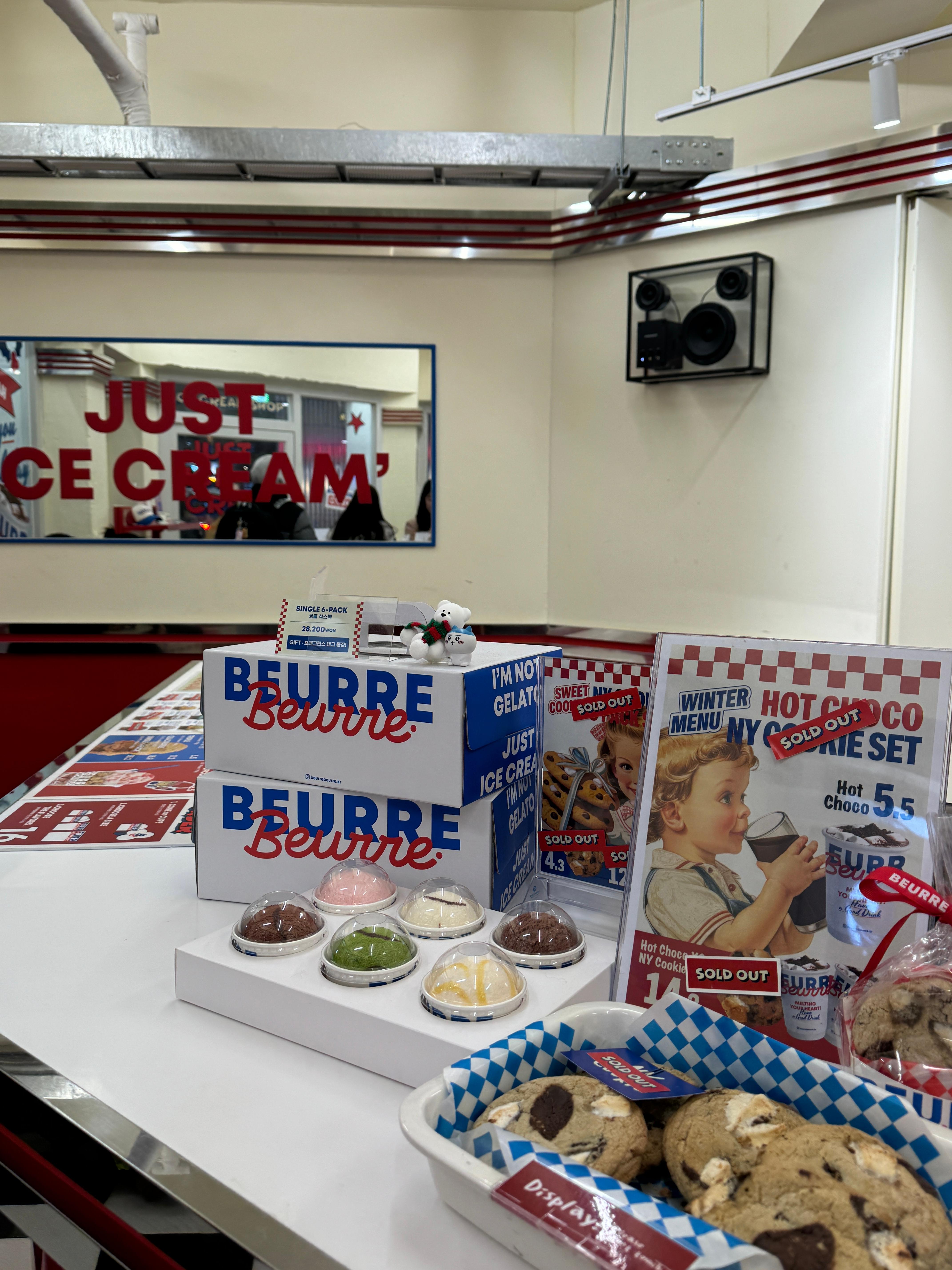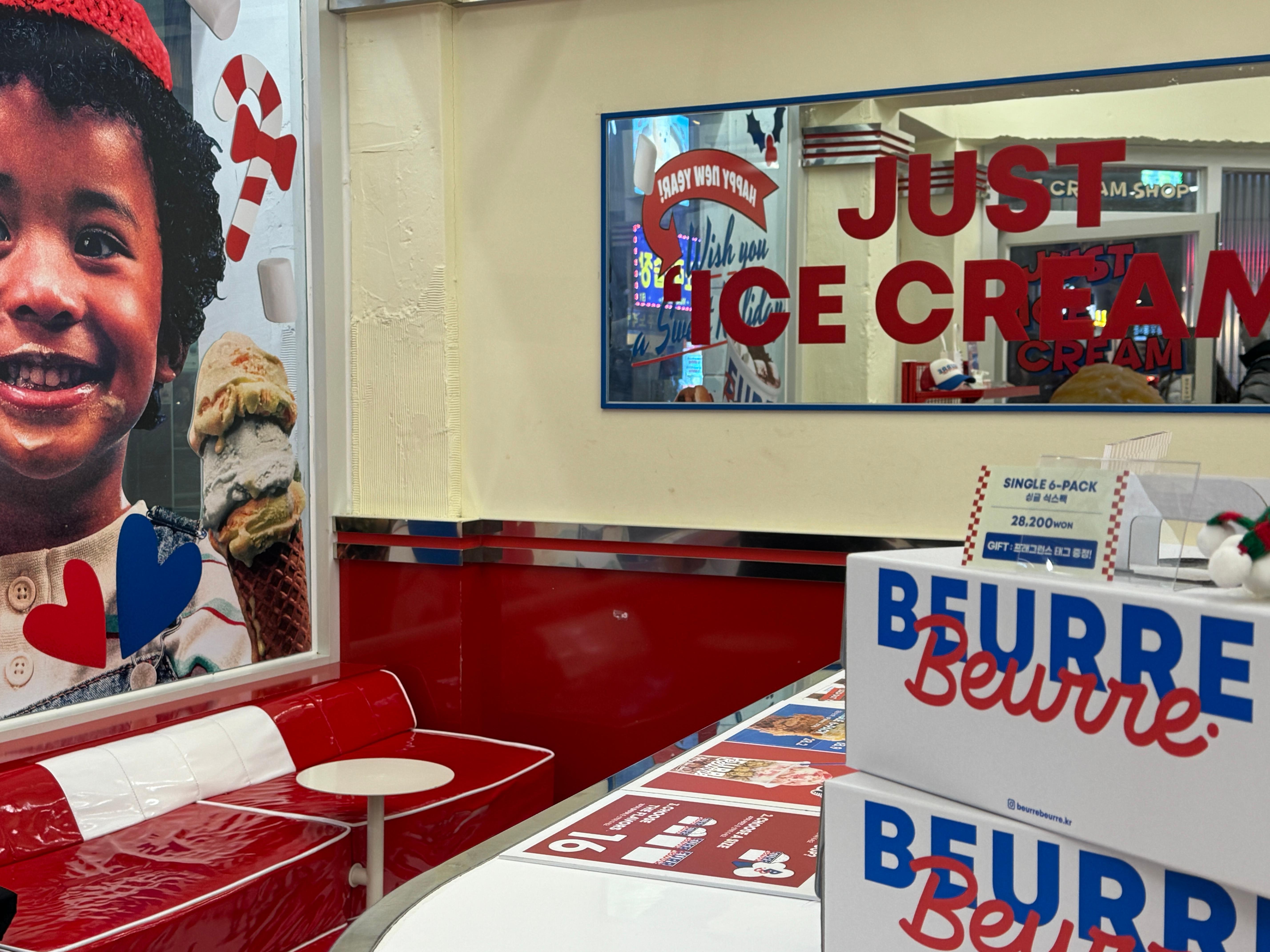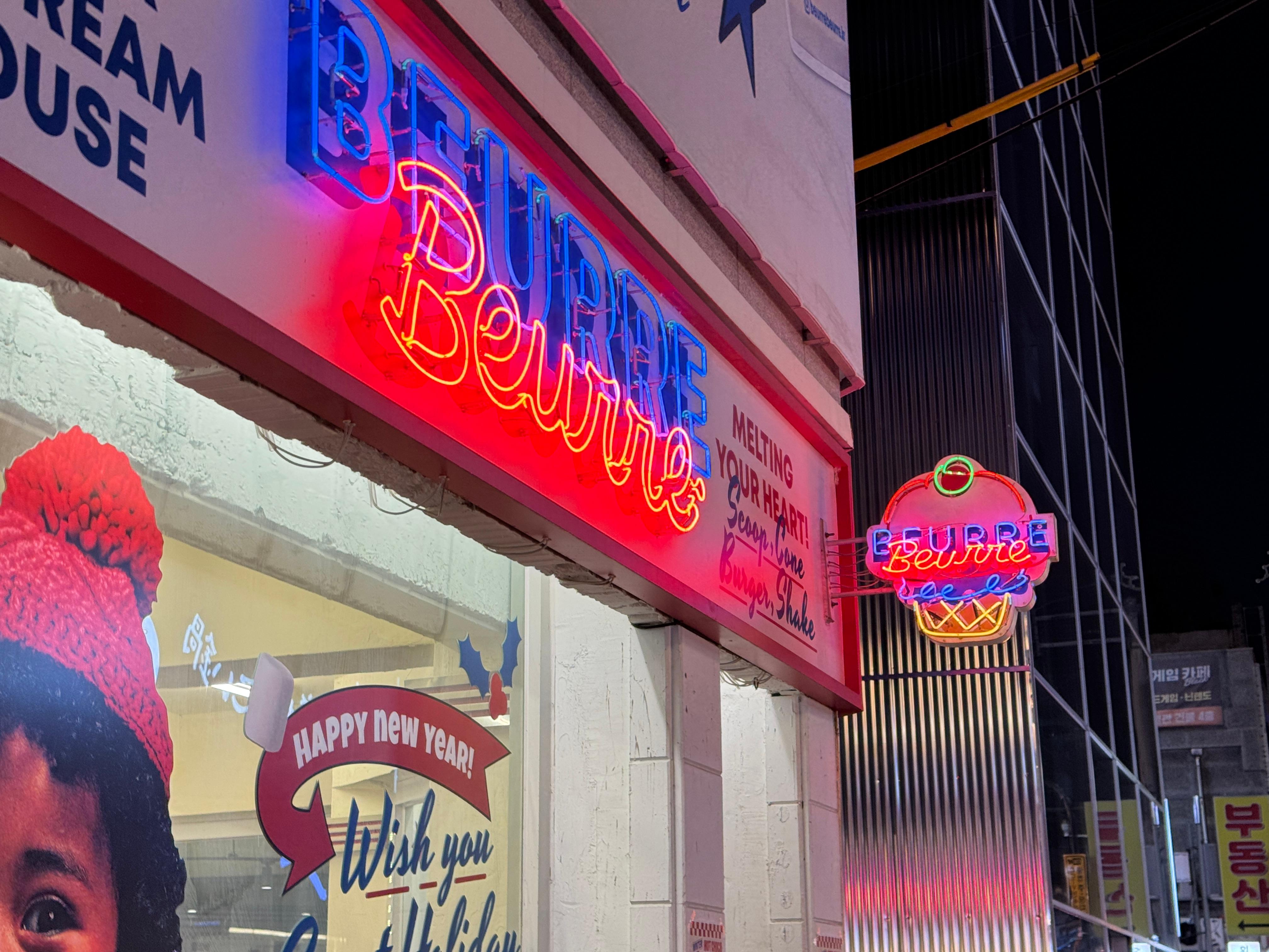 버터 맥주, 버터 아이스크림으로 2022년을 강타했던 뵈르뵈르도 멀리 떨어지지 않은 곳에서 만나볼 수 있습니다. 버터를 테마로 한 다양한 간식거리들을 판매하는 곳인데요. 미국 패스트푸드점 느낌 물씬 나는 인테리어가 시선을 재미있게 합니다. 버터향이 가미된 맥주를 시작으로 헤비한 아이스크림 맛으로 유명해졌는데요. 과자, 김 등의 일상적인 먹거리를 뵈르뵈르의 감각으로 해석하여 다양한 브랜드들과 콜라보를 통해 선보이는 제품들을 구경 하는 것도 재미있습니다.