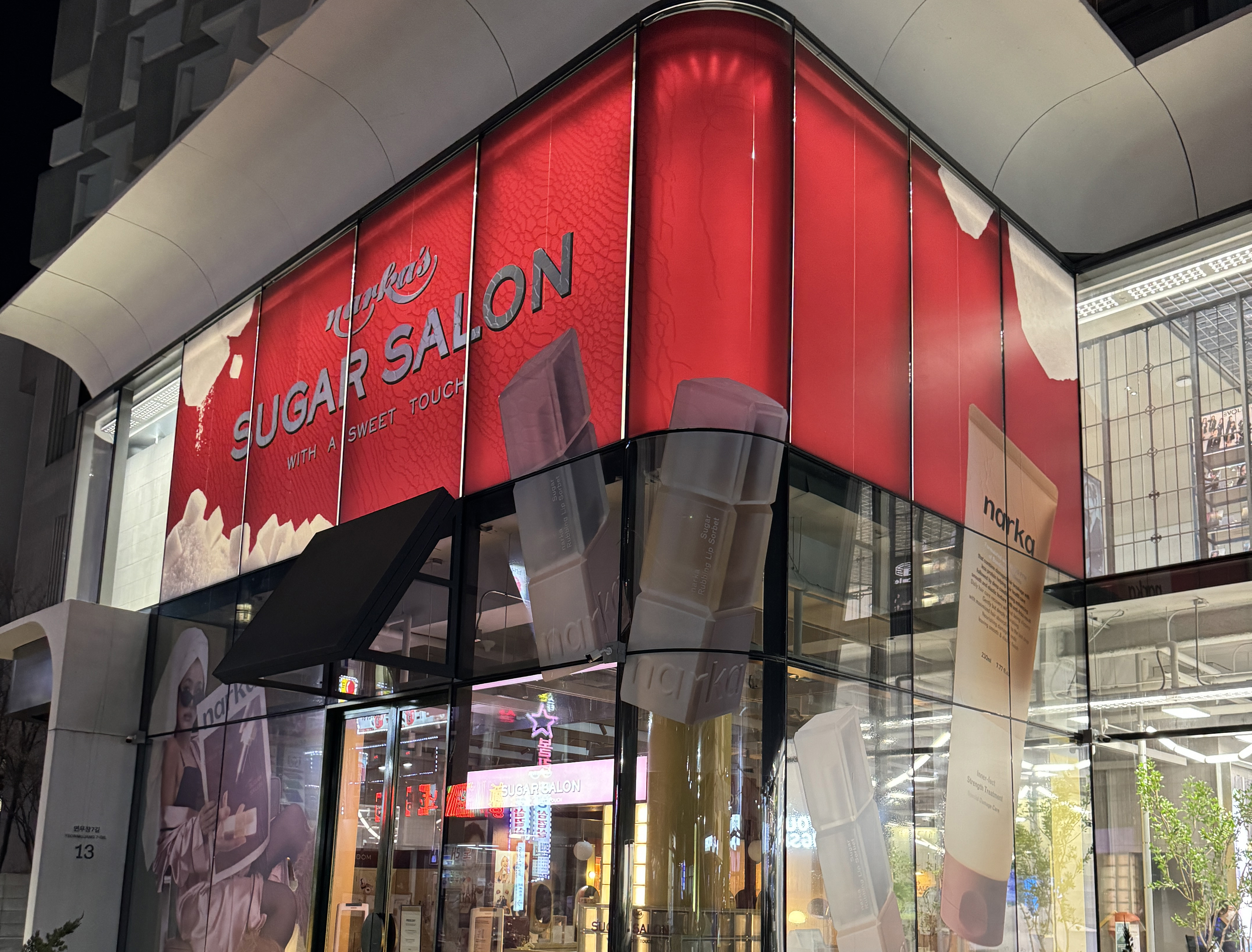 ‘나르카 슈가 살롱’은 헤어케어부터 스타일링까지 다양한 아이템을 선보이는 신예 브랜드입니다. 헤어케어 아이템을 메인으로 선보이던 브랜드에서 색조 케어 아이템으로 본격적으로 확장하며 신제품 런칭 팝업을 성수동에서 준비했는데요. 평소 보던 팝업에 비해 상시 운영하는 매장처럼 감도가 상당해 지금 성수에서는 가장 핫한 팝업 스토어라고 합니다. 헤어와 메이크업이 모두 가능한 살롱을 테마로 꾸며진 ‘슈가 살롱’은 입장부터 아메리칸 살롱 감성이 물씬 느껴지는 인테리어와 제작된 살롱 가운들이 눈길을 끕니다.