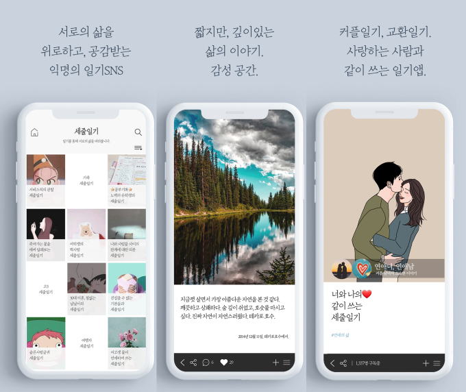 안온한 하루를 보낸 사실에 감사하고자 일기를 쓰는 사람들도 부쩍 늘고 있어요. 스타트업 윌림에서 개발한 '세줄일기'는 사진 한 장과 글 세 줄로 그날 있었던 일을 기록하는 일기 쓰기 앱인데요. 단 세 줄로 하루를 간단하게 기록할 수 있어 일기 쓰기에 부담을 느끼는 사람들에게 반응이 뜨꺼워요. 써 둔 일기를 모아 책을 만들 수도 있고, 원한다면 익명으로 남들에게 공개할 수도 있어요.
