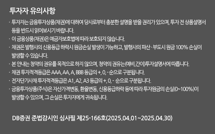 | [DB증권]장외채권에 투자해 봄 이벤트 (0) | 2025.04.01 |