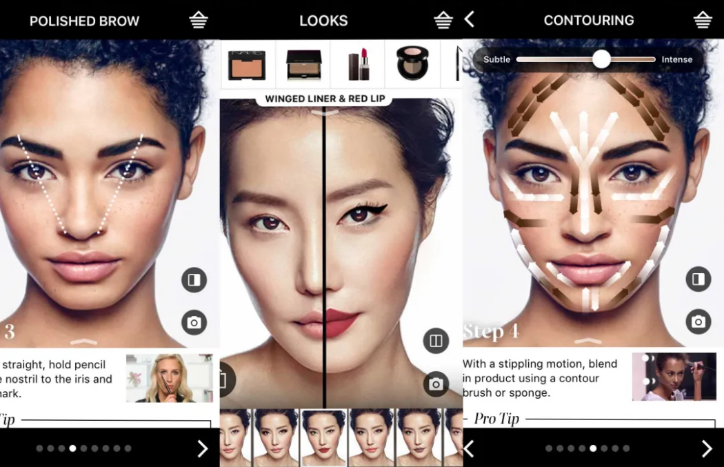 표정 만들기에 가장 특화된 산업은 단연 뷰티 업계예요. 뷰티 브랜드가 앞다투어 뷰티 테크를 기반으로 '고유의 표정 만들기'에 공을 들이고 있어요. 로레알의 모디페이스(ModiFace)는 가상 메이크업 트라이온 기능으로 다양한 색상의 립스틱이나 아이섀도 같은 메이크업 제품을 자신의 얼굴에 발라볼 때 어떻게 보일지 실시간으로 확인할 수 있어요.
