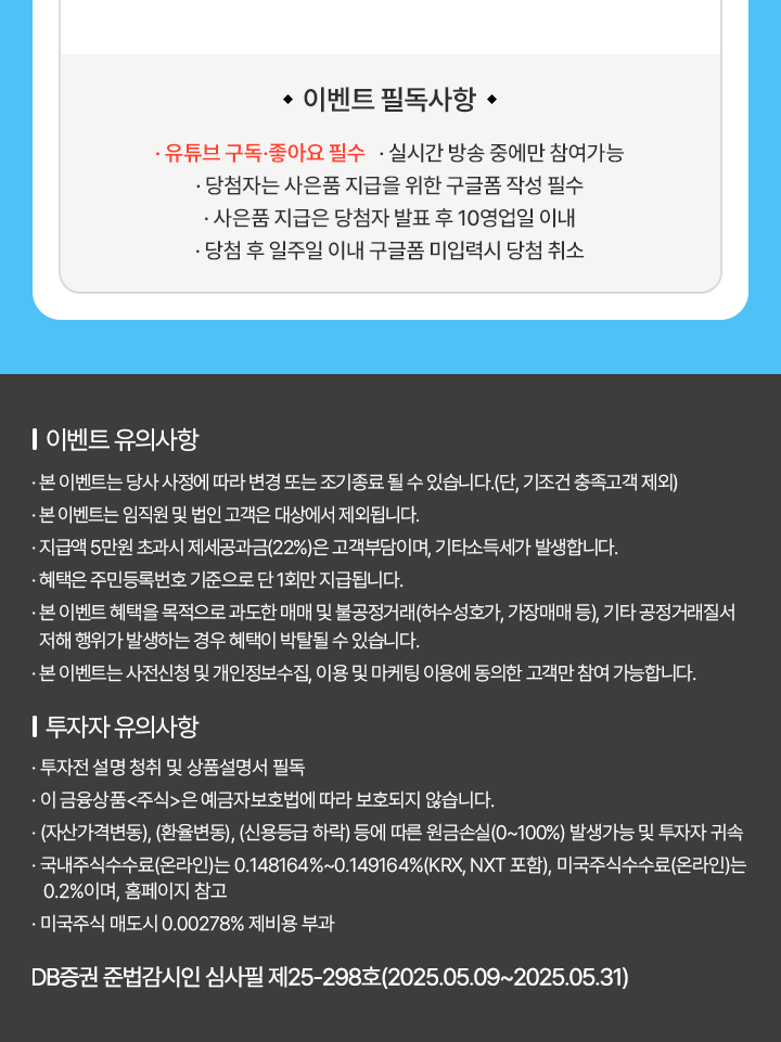 [DB증권] 사명변경 기념 해외선물옵션 신규고객 유치 이벤트 (0) | 2025.05.15 |