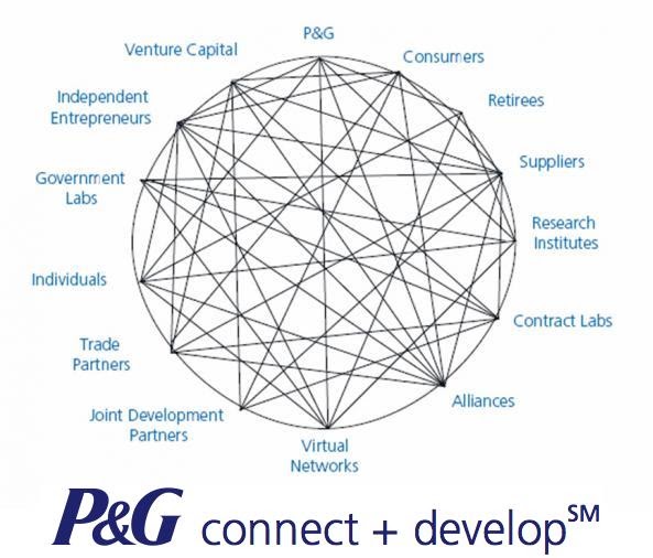P&G그룹의 Connect+Develop팀이 좋은 사례인데요. 이 팀은 스타트업, 실험실, 연구기관, 금융기관, 공급업체, 특허 보유자, 학계 등 외부 파트너를 적극 발굴해 참여시키면서 P&G 사업부 전반의 요구를 충족하는 파괴적 혁신 제품이나 서비스, 솔루션을 만들어내요. 이러한 협업은 단순한 아웃소싱을 넘어 실질적인 공동 창작으로 P&G의 혁신과 매출 증대에 크게 기여했습니다.