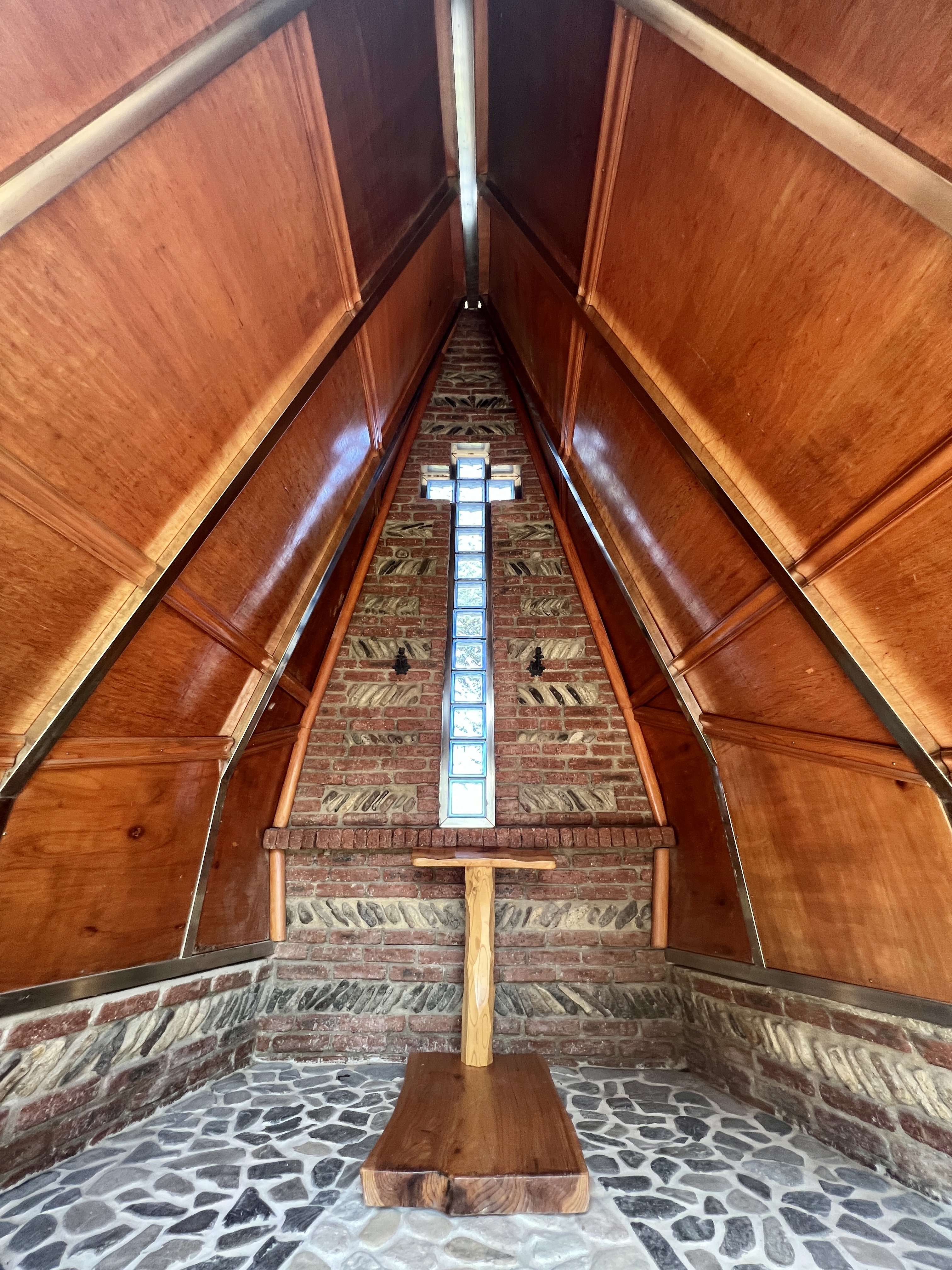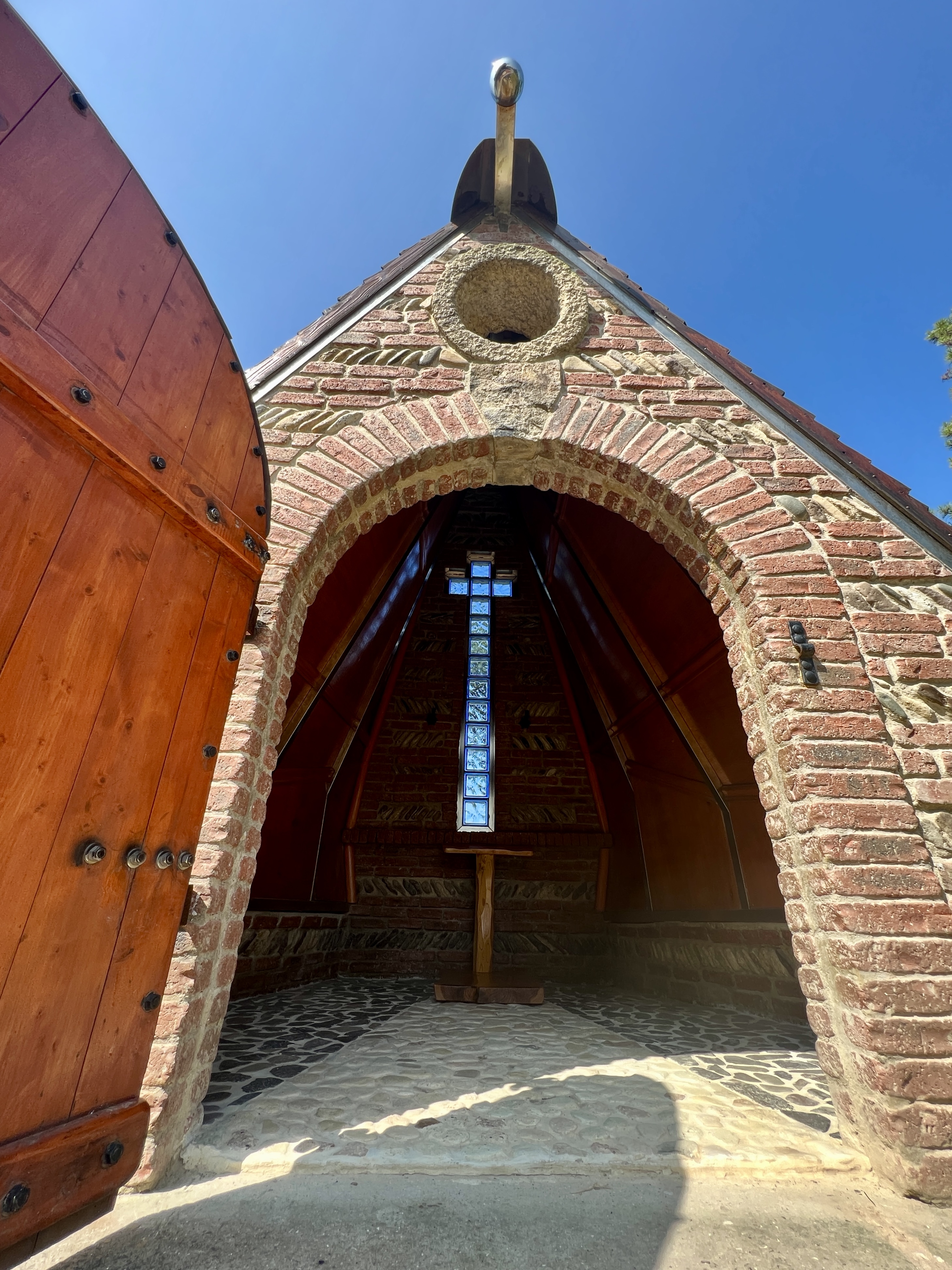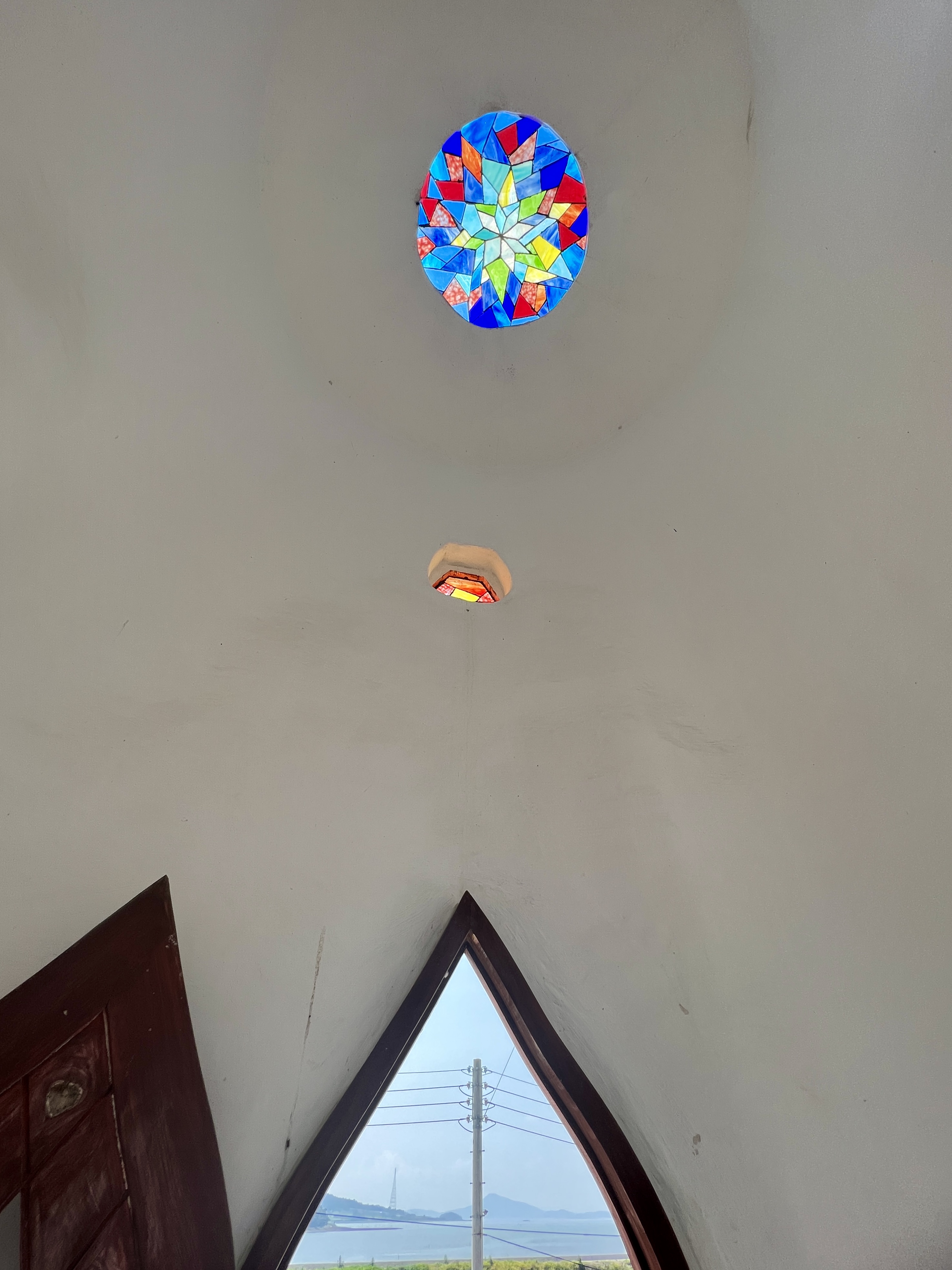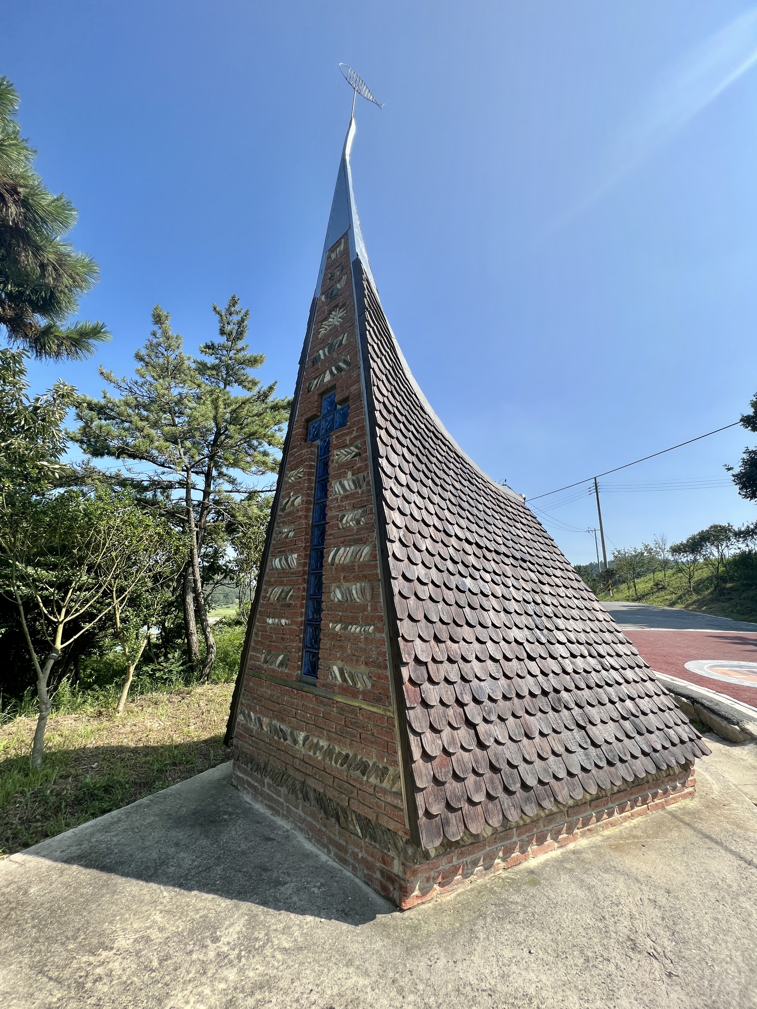 전통 나무배 형상을 한 실내 구조도 특이해요. 유리 십자가 아래 납작 엎드렸습니다. 숨을 돌리고 평안을 느낄 수 있는 곳은 성스러운 한 평 공간이면 충분할 거예요. 나의 생은 더 멀고 더 낮은 곳, 더 험악한 시간 속에 머물러야겠다고 다짐합니다.