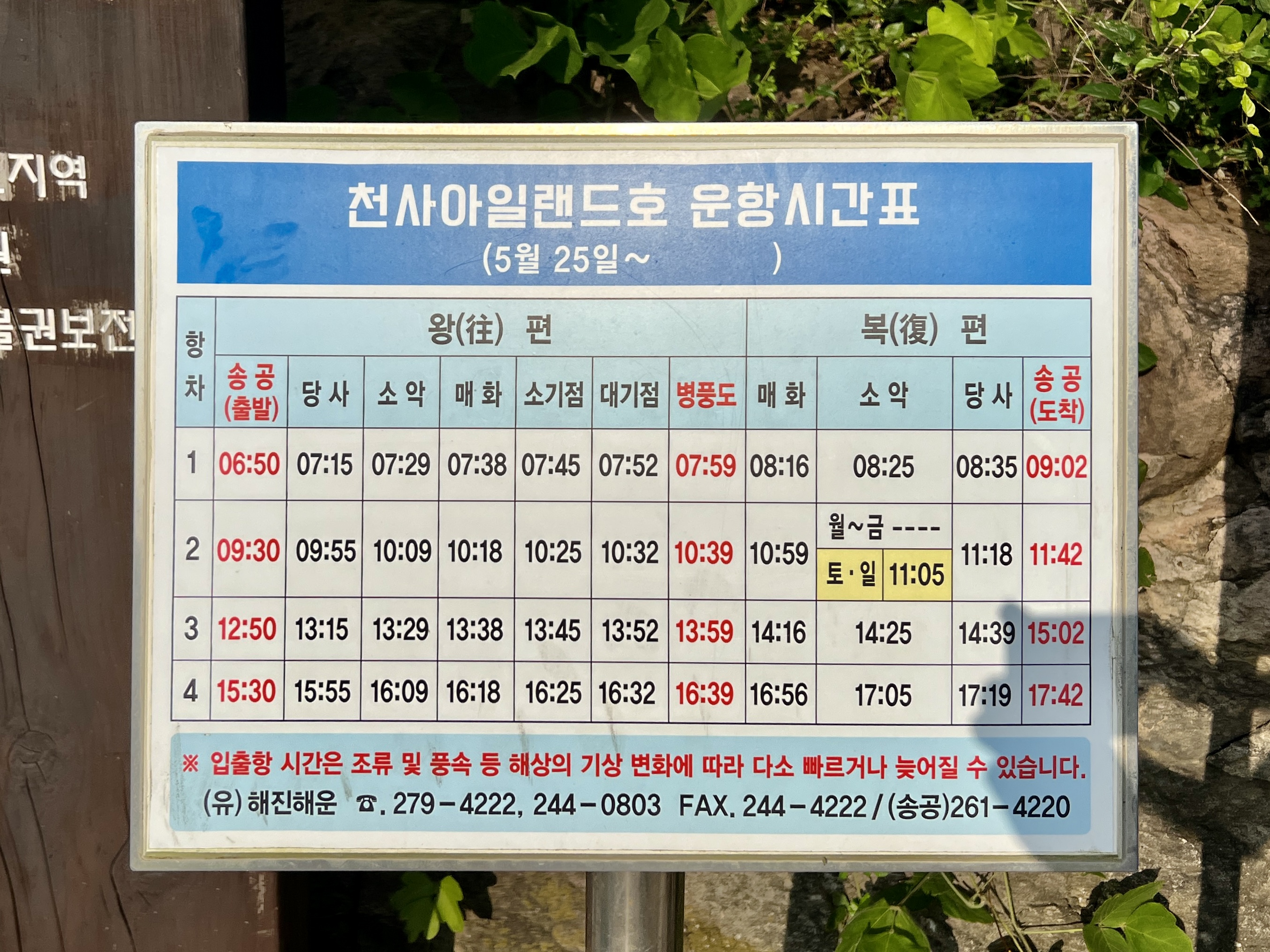 • 운항시간 : 송공항 출항 (신분증 지참)