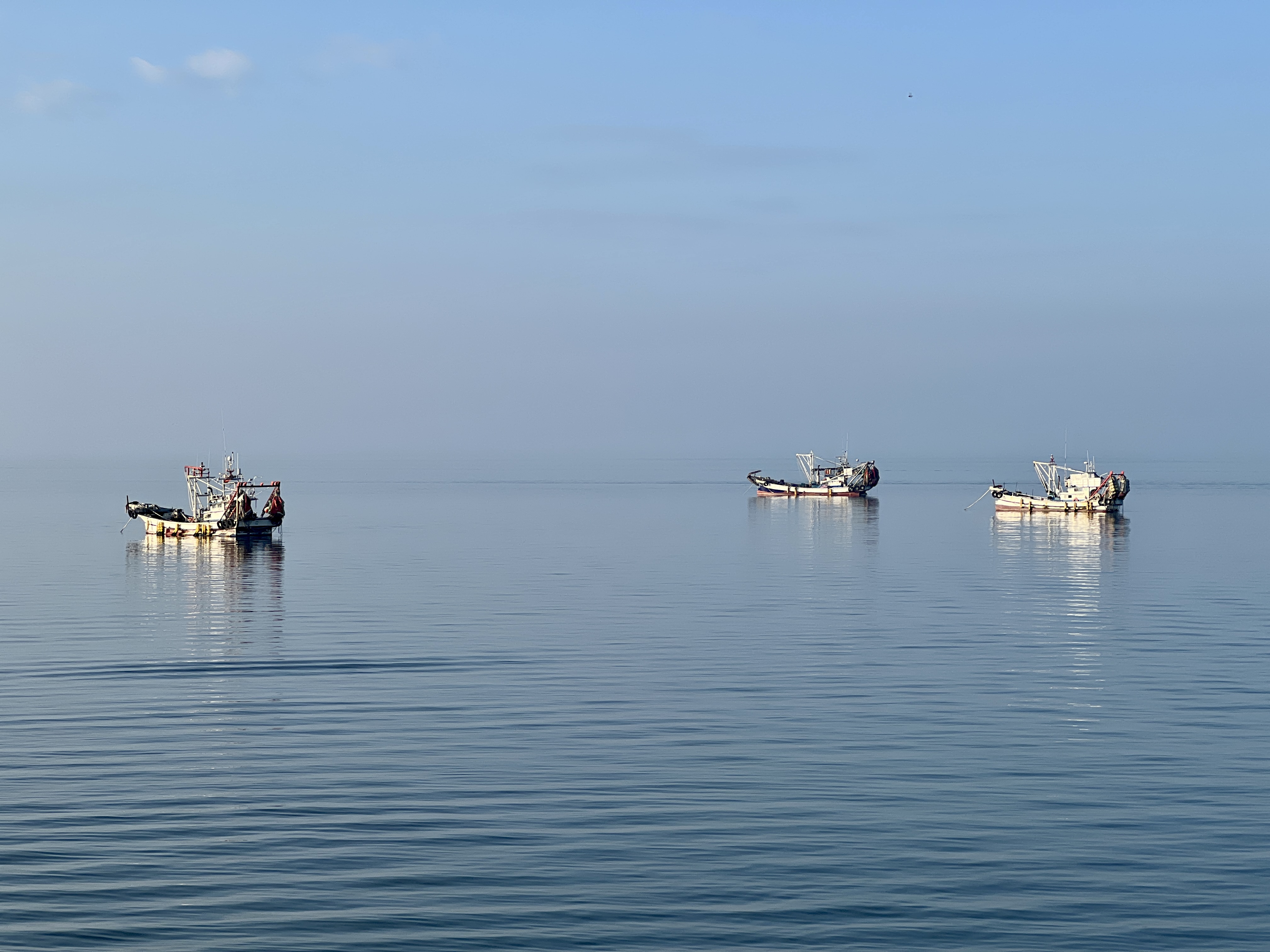 아침 해무와 겹쳐 바다는 푸른 뭍 같고 고깃배 서너 척이 그 위에 놓여 있어요. 고요하고 몽환적입니다. 곧 예수가 물 위를 걸어올 것 같아요.^^ 방랑의 걸음이 어쩌다 여기까지 흘러왔을까요. 오늘은 이 바다 위를 걸어갈 용기를 내야겠습니다.