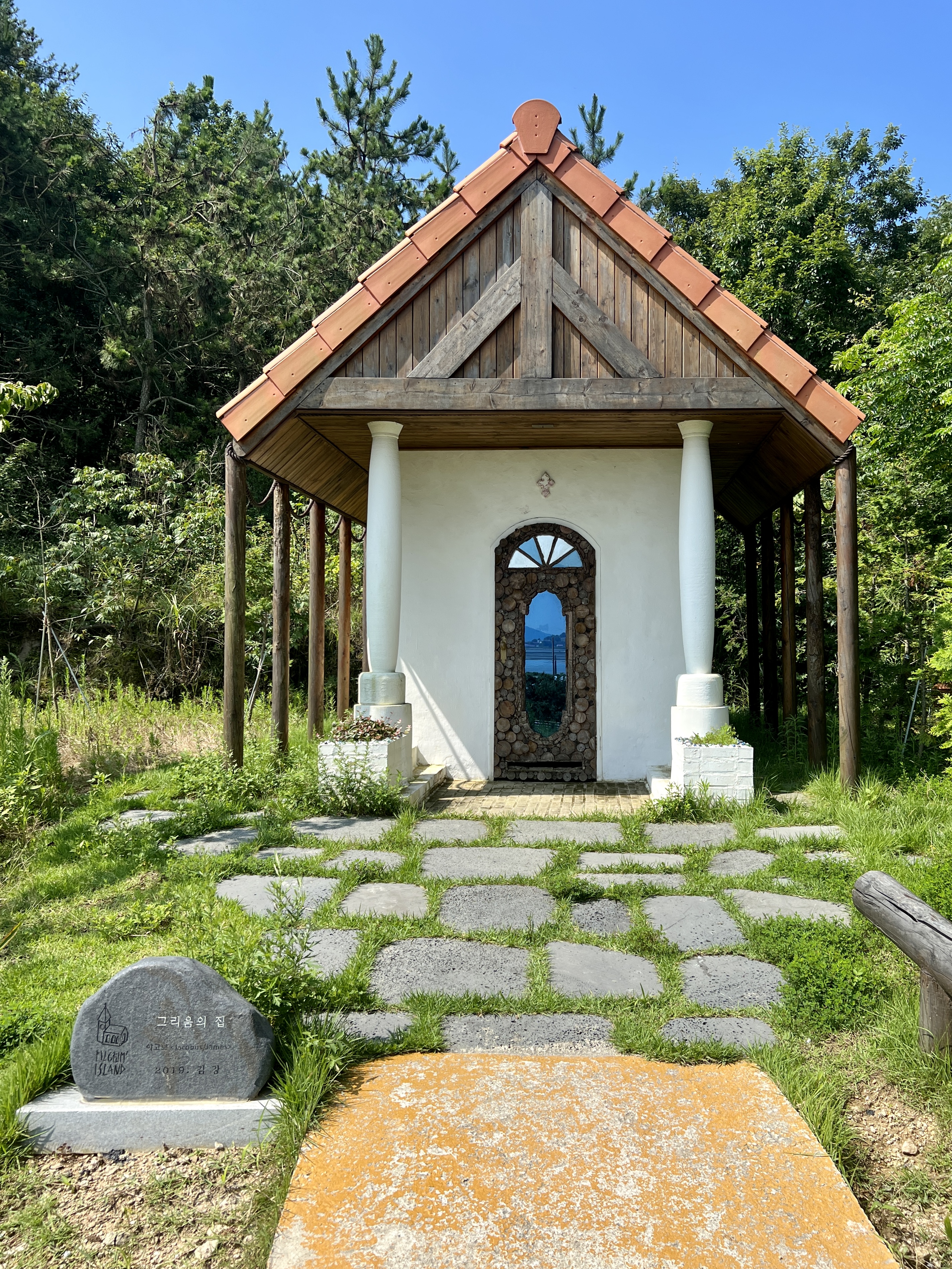 '그리움의 집'은 꼬불꼬불 언덕길을 오르다가 길이 끝나고 숲이 시작되는 곳에 있어요. 윌리엄 폴 영의 소설 『오두막』에서 맥이 '파파'를 만난 장소가 이런 모습이 아닐까 상상했어요. 저 문을 열고 들어가면 '파파'가 있을지도 모릅니다.