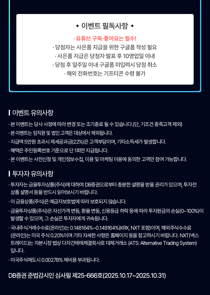 | DB증권, DBㆍ케이원 한미주식형랩 가입 이벤트 (0) | 2025.11.03 |