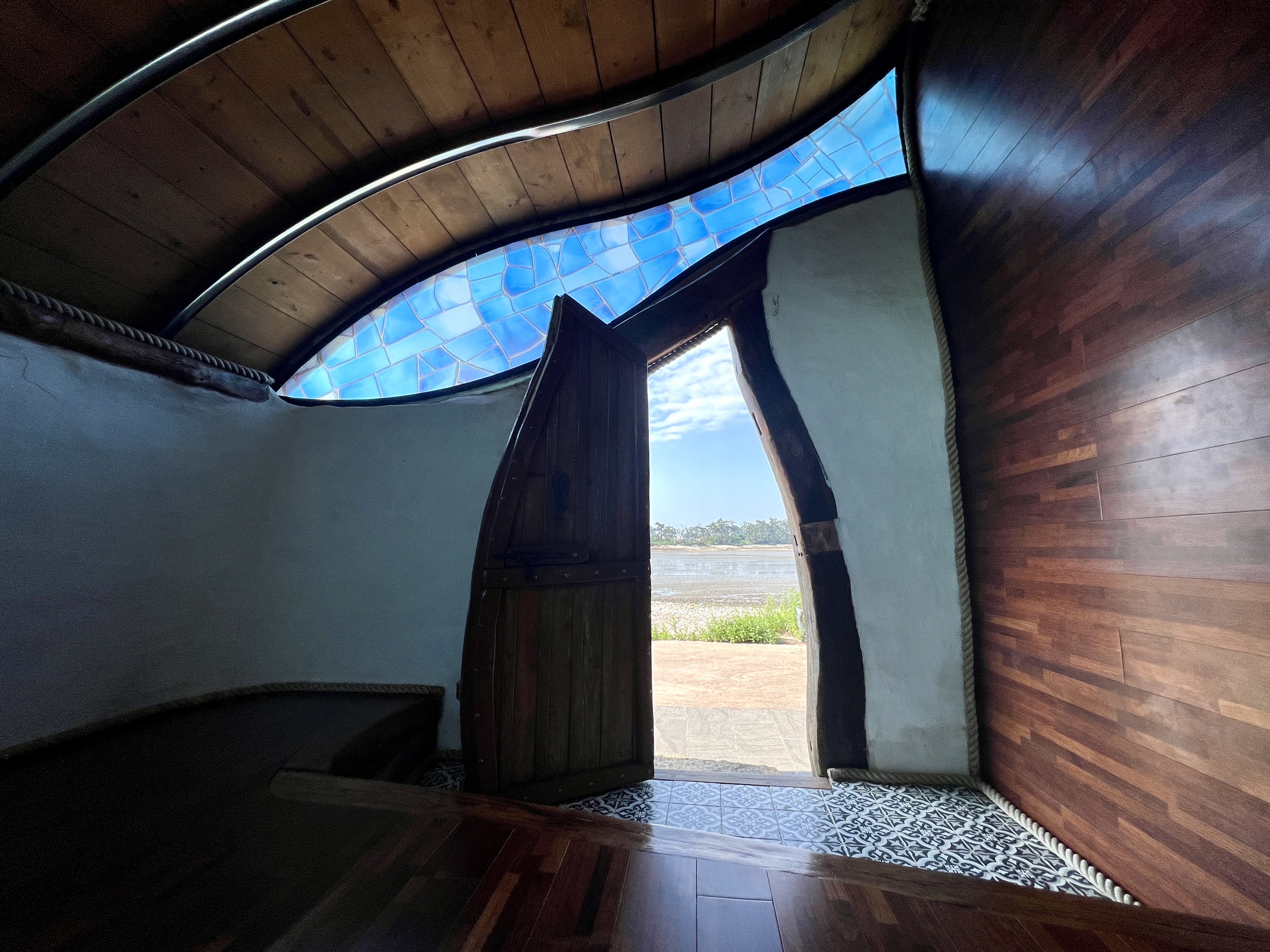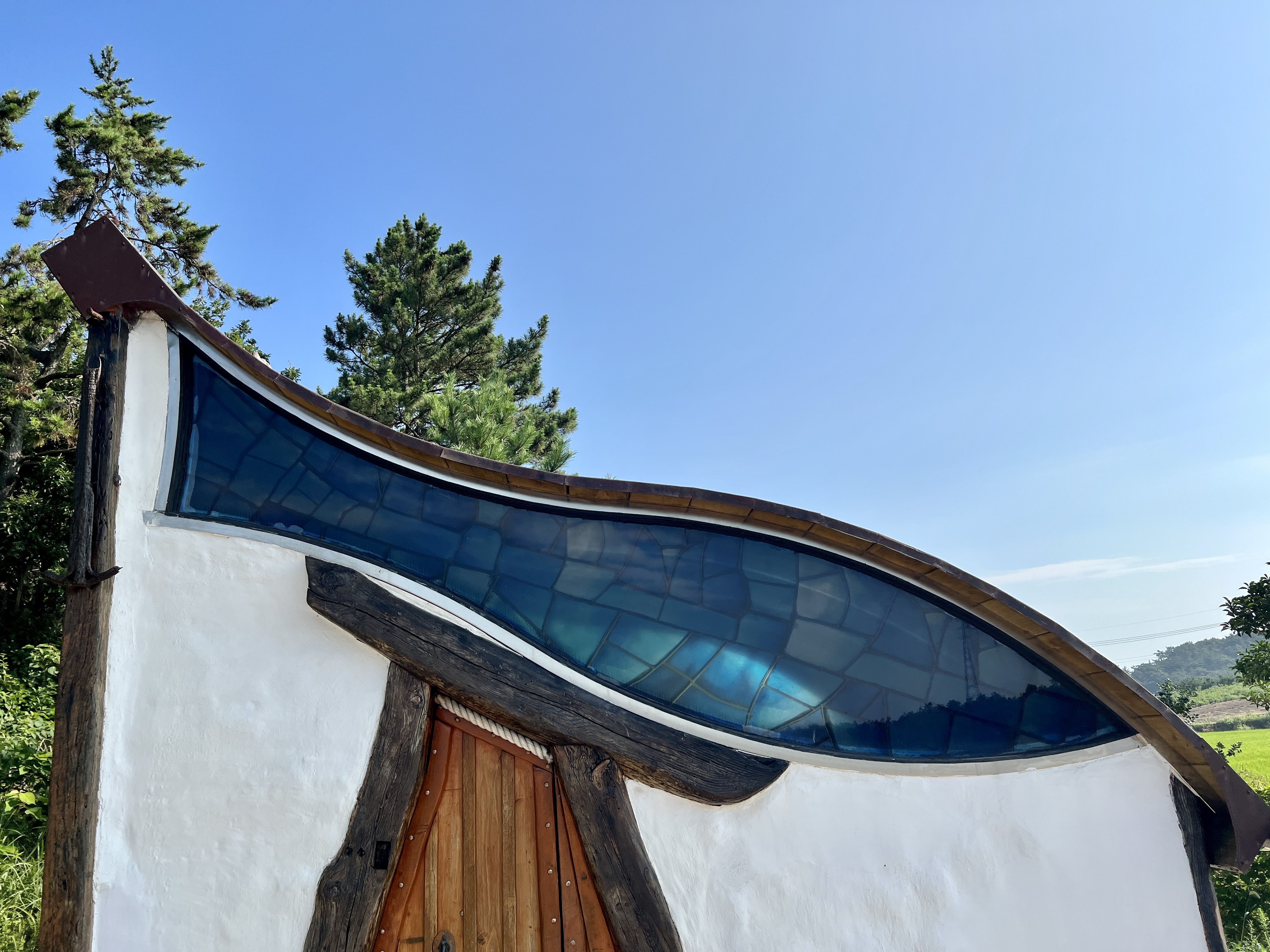 장미셀, 파코, 브루노 세 유럽 작가는 100년이 넘은 우리나라 고택에서 가져온 고목재로 기둥을 세웠는데요. 나무의 곡선이 물고기 모양 창과 어울려 참 아름다워요.