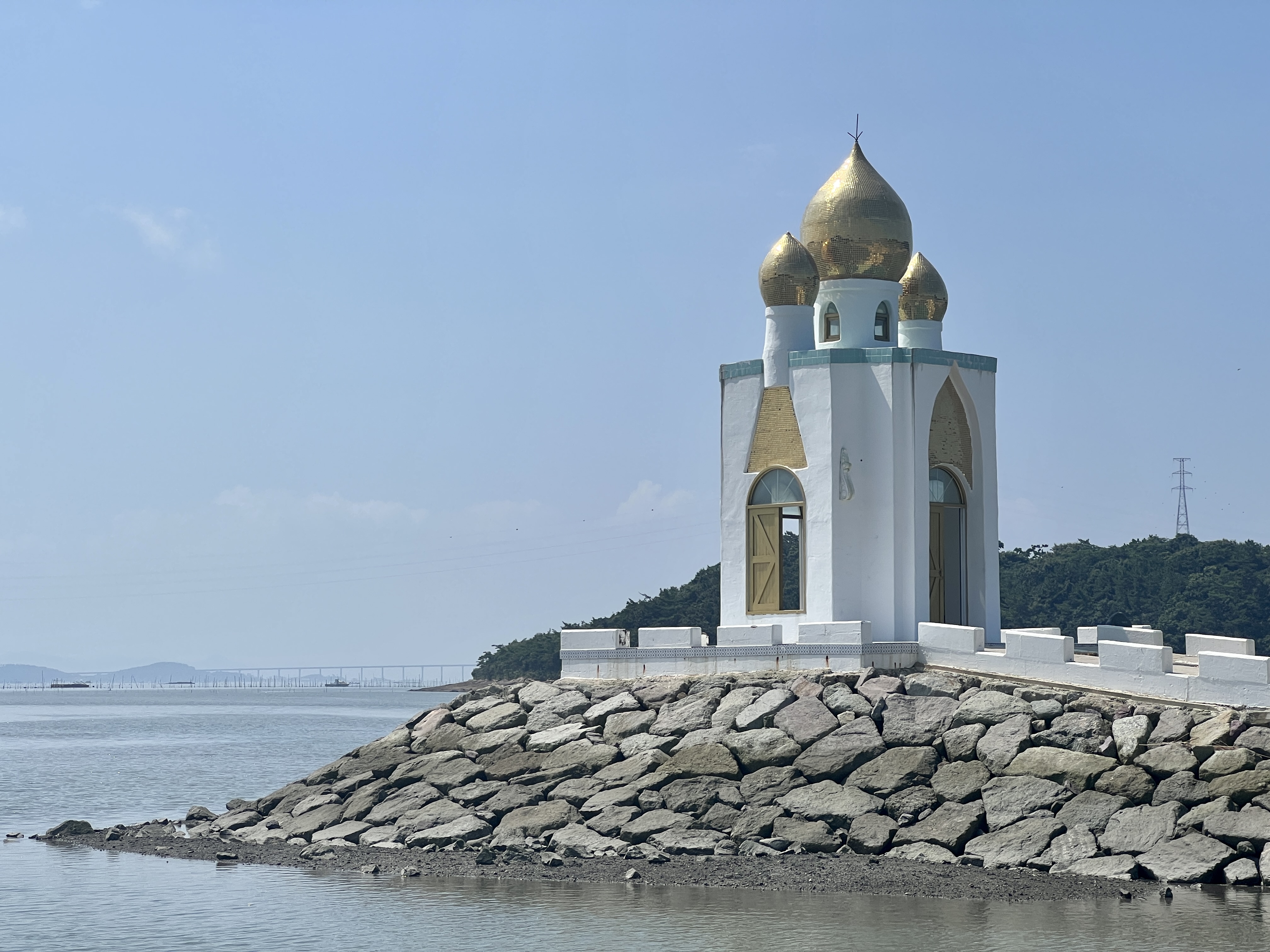 박하색 타일 지붕 위에 놓인 금빛 돔이 독특해 얼핏 이슬람의 모스크나 러시아 정교회의 건물 같지만, 실은 마을 특산물인 양파를 형상화한 것인데요. 작가는 섬주민의 일상과 삶에 경의를 표하려는 의도였다고 해요.
