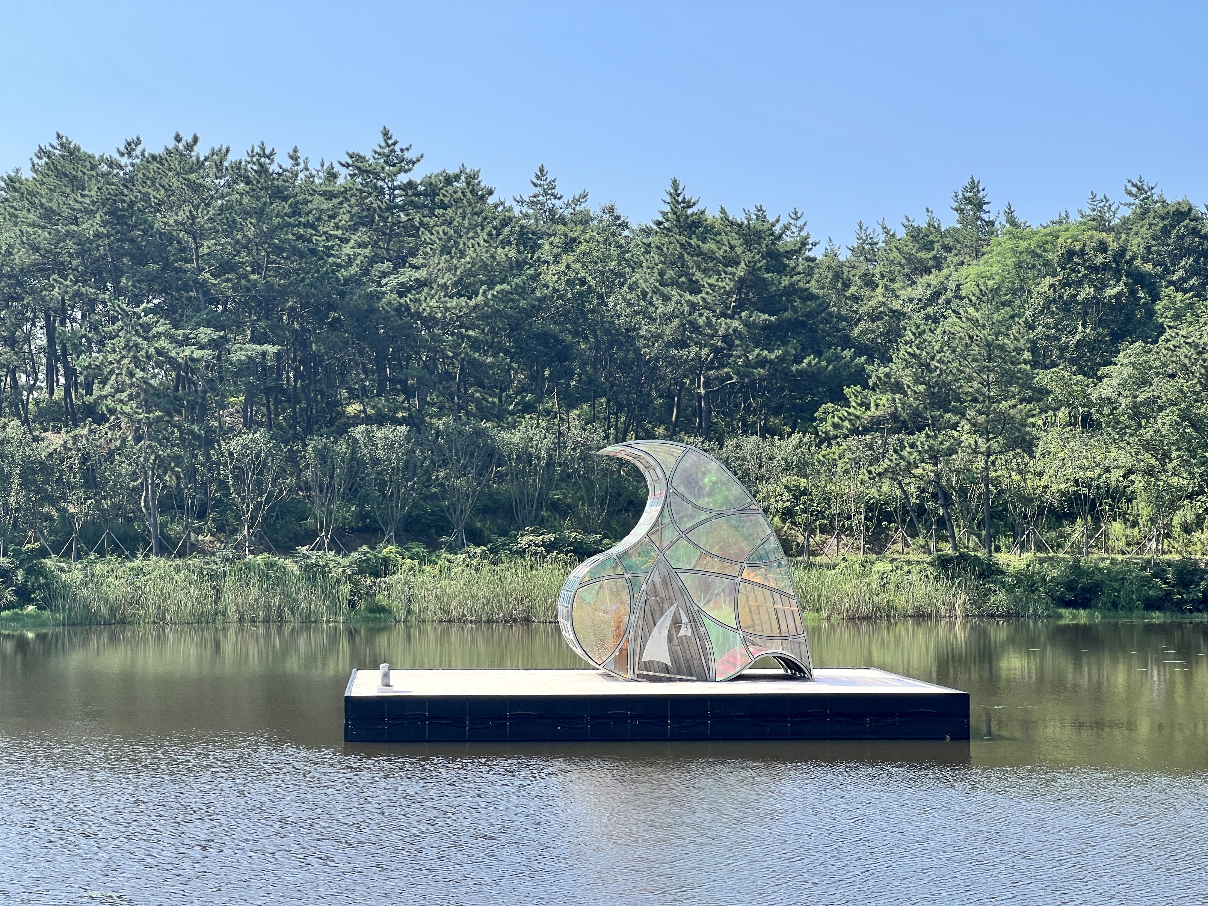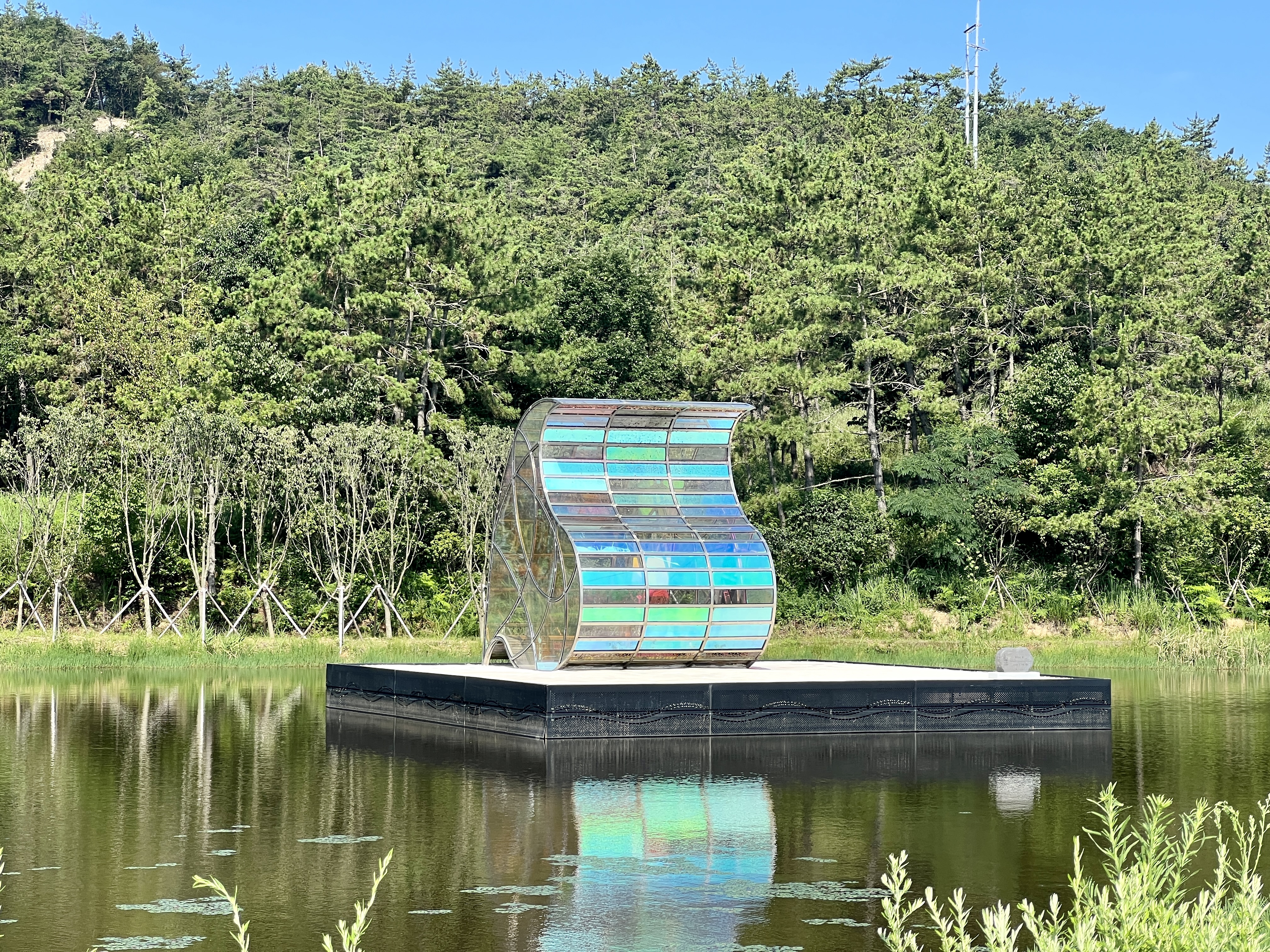 소기점도 호수 위에 전체가 스테인드글라스로 이루어진 예배당이 꽃송이처럼 물 위에 떠 있어요. 바르톨로메오를 되새기는 '감사의 집'입니다. 네 명의 작가가 호수와 주변에 서식하는 여러 새와 연꽃, 파도 모양에서 영감을 받아 지었어요.