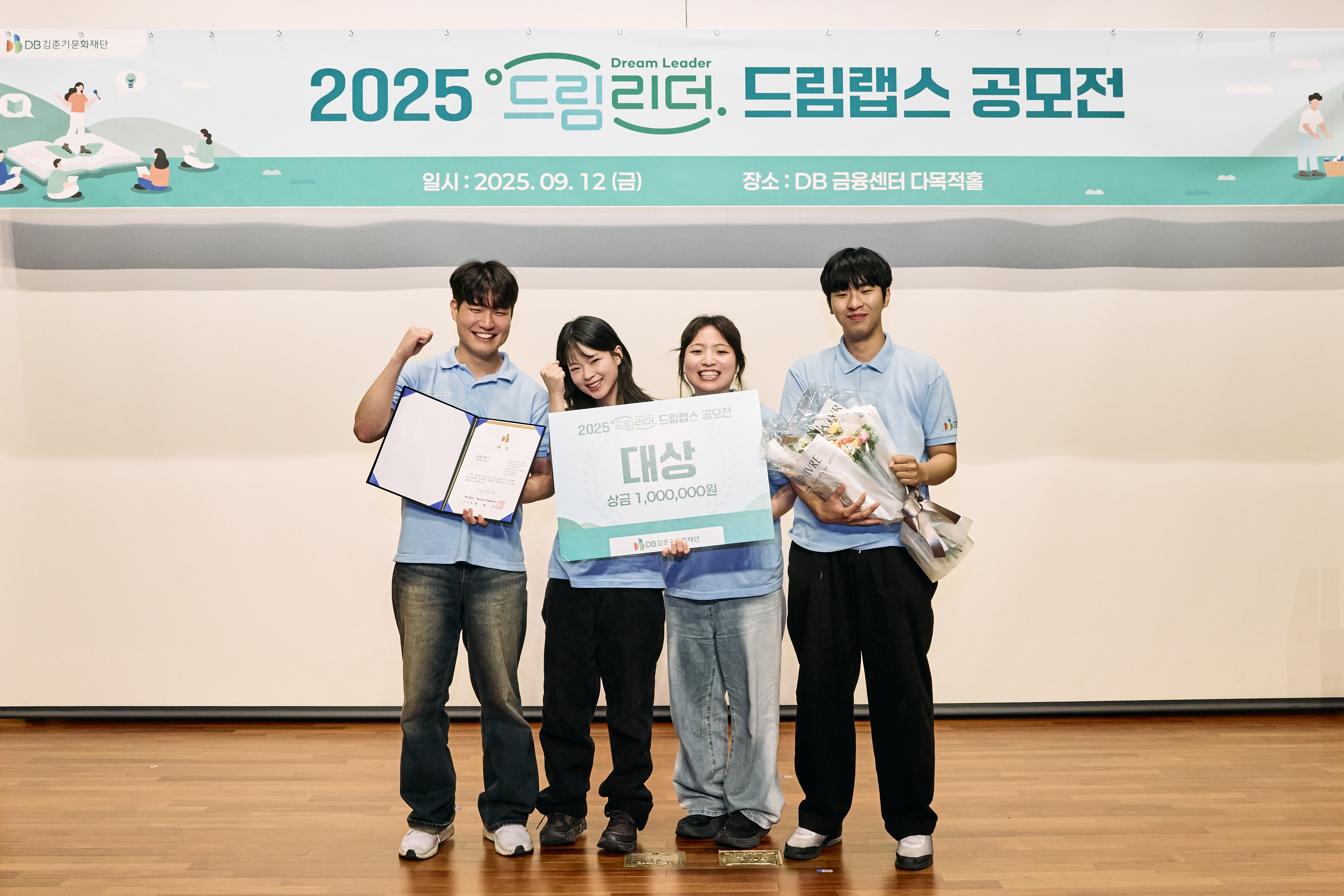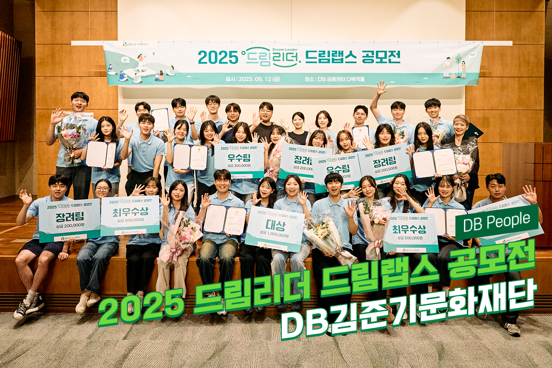 2025년 9월 12일, DB김준기문화재단이 주최한 ‘2025 DB드림리더 드림랩스 공모전’이 개최되었다. 이날 현장에는 전국의 DB드림리더 2기 장학생 60명, 10개 팀이 한자리에 모여, 지난 6개월간의 활동을 돌아보고 직접 기획한 단체 프로젝트를 발표했다.