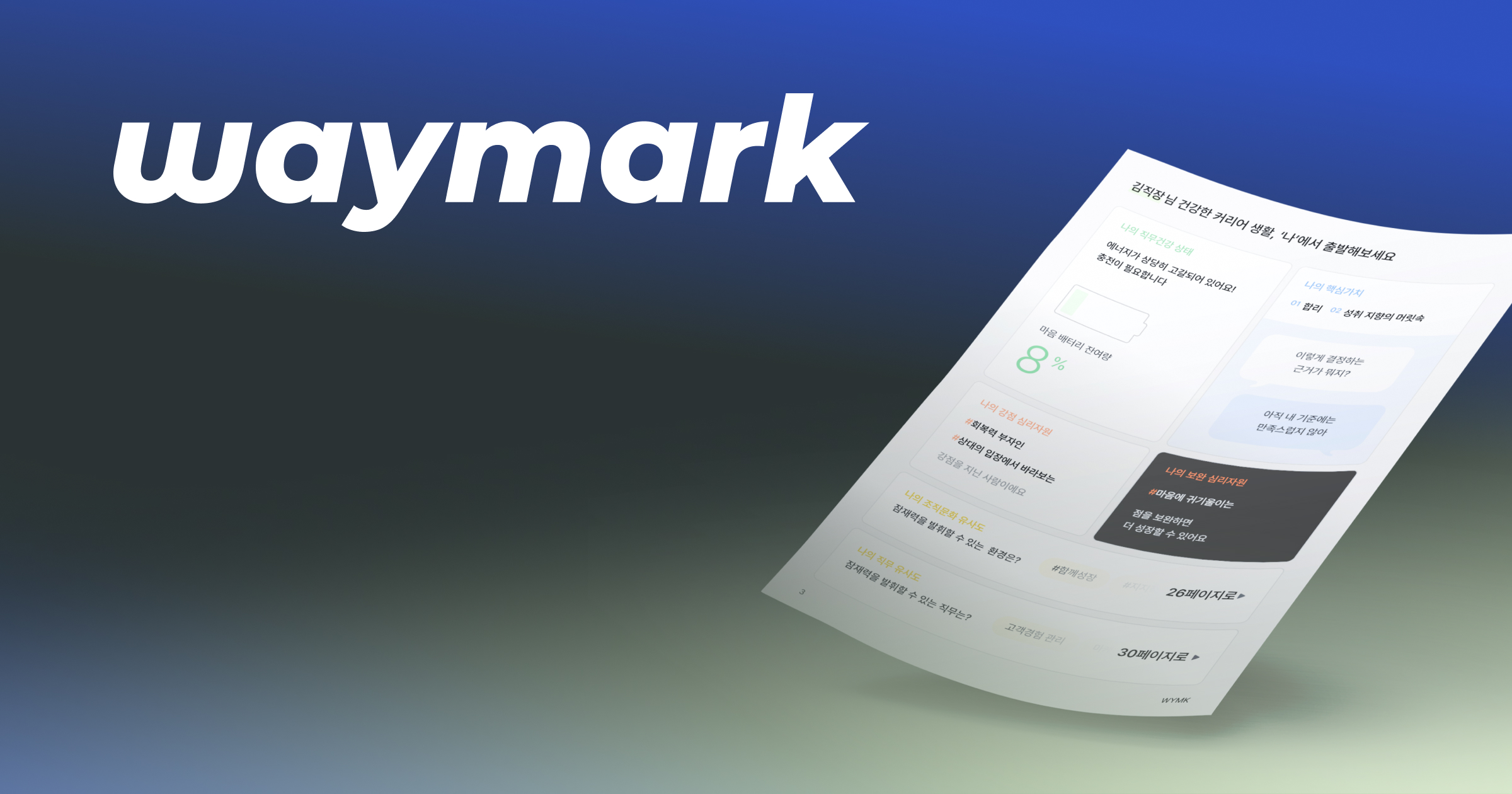 외모뿐만 아니라 일터에서의 자기 이해를 돕는 서비스도 등장했어요. 직장인 커리어핏 진단 검사 서비스 '웨이마크(waymark)'는 자신의 심리 역량과 성장할 수 있는 조직문화, 직무 건강 상태, 심리 자원의 강점과 취약점, 일할 때 중요하게 여기는 핵심 가치 같은 기준을 통해 직장인으로서의 자신을 객관적으로 이해할 수 있는 조언을 제공해요.