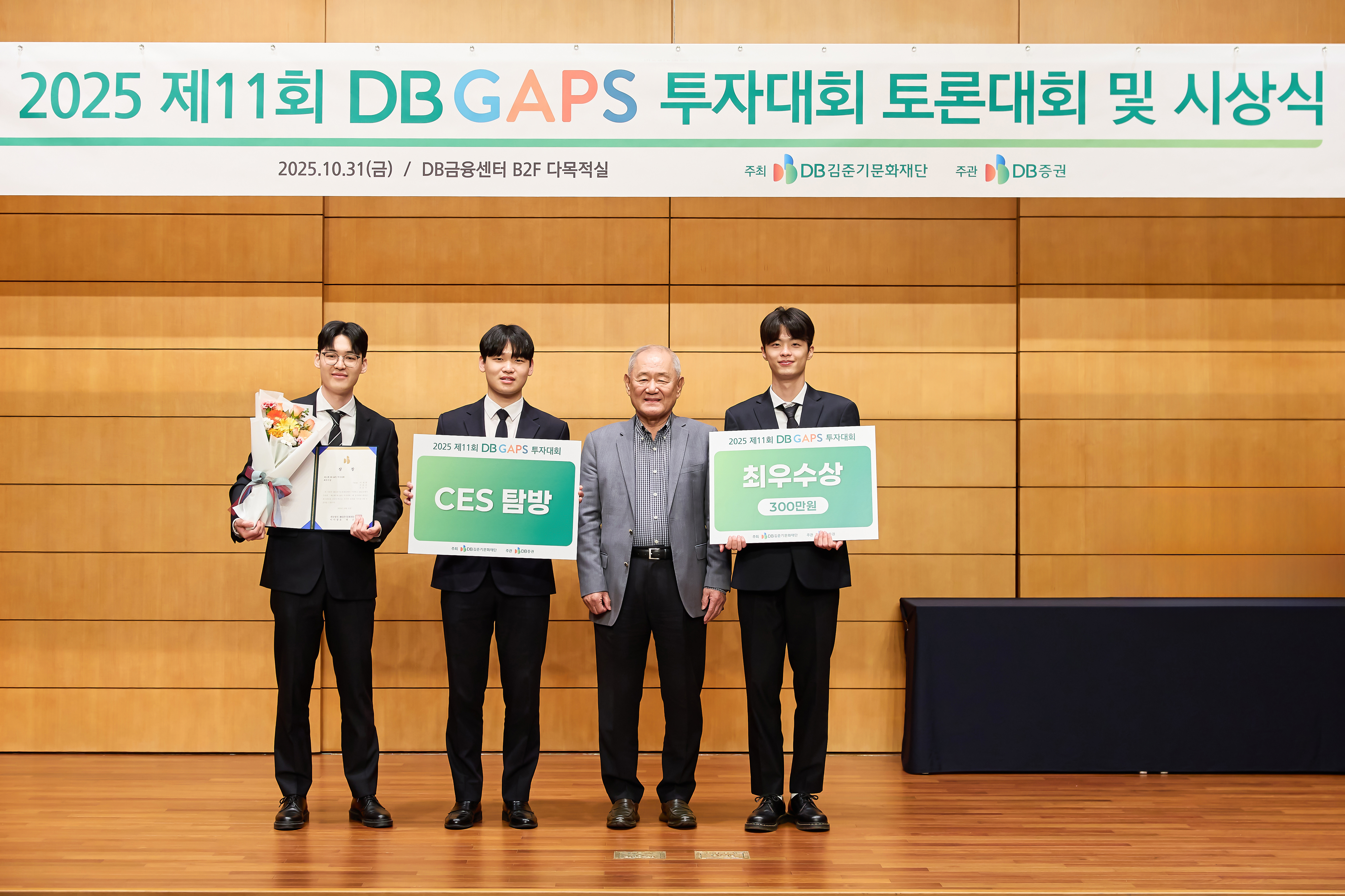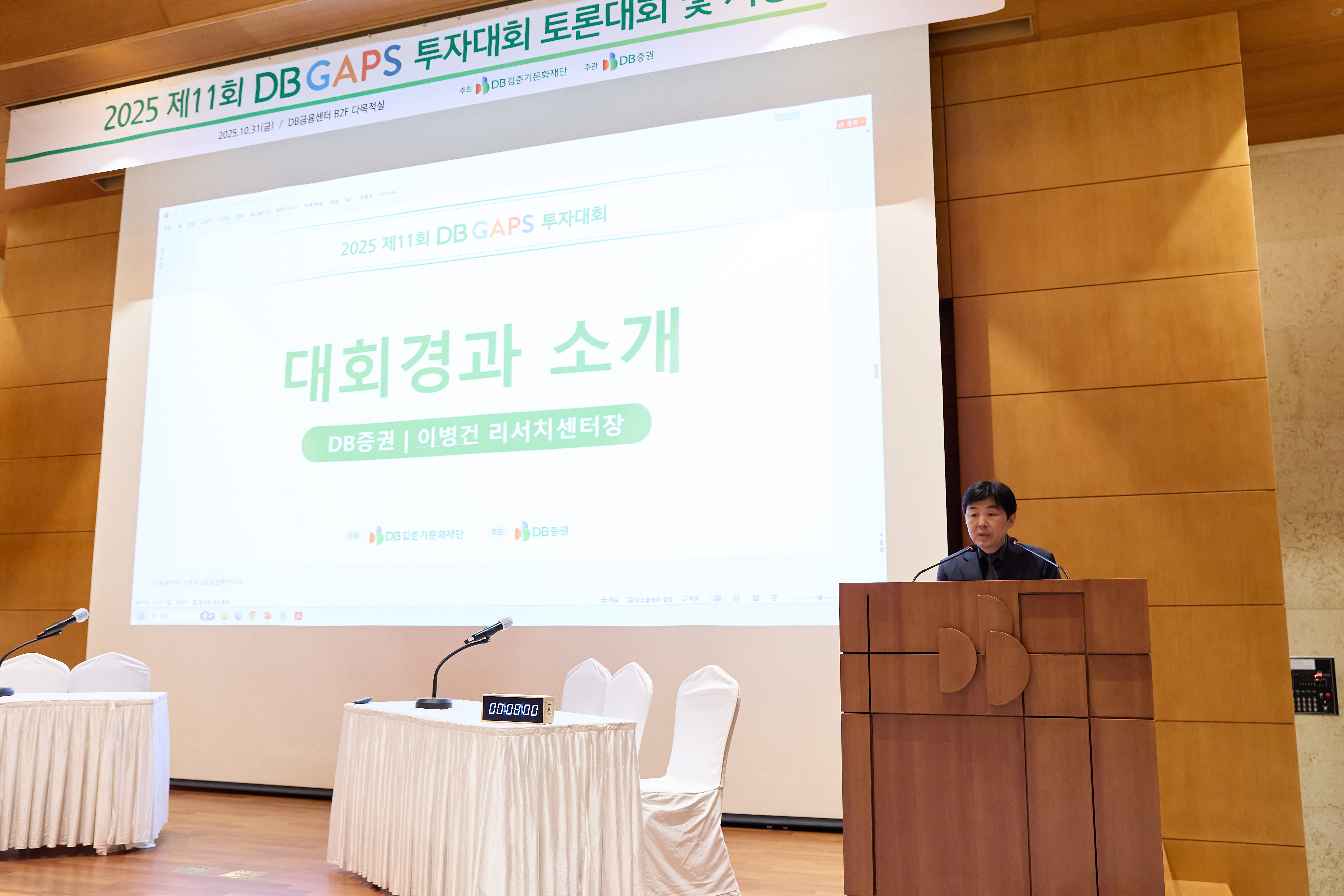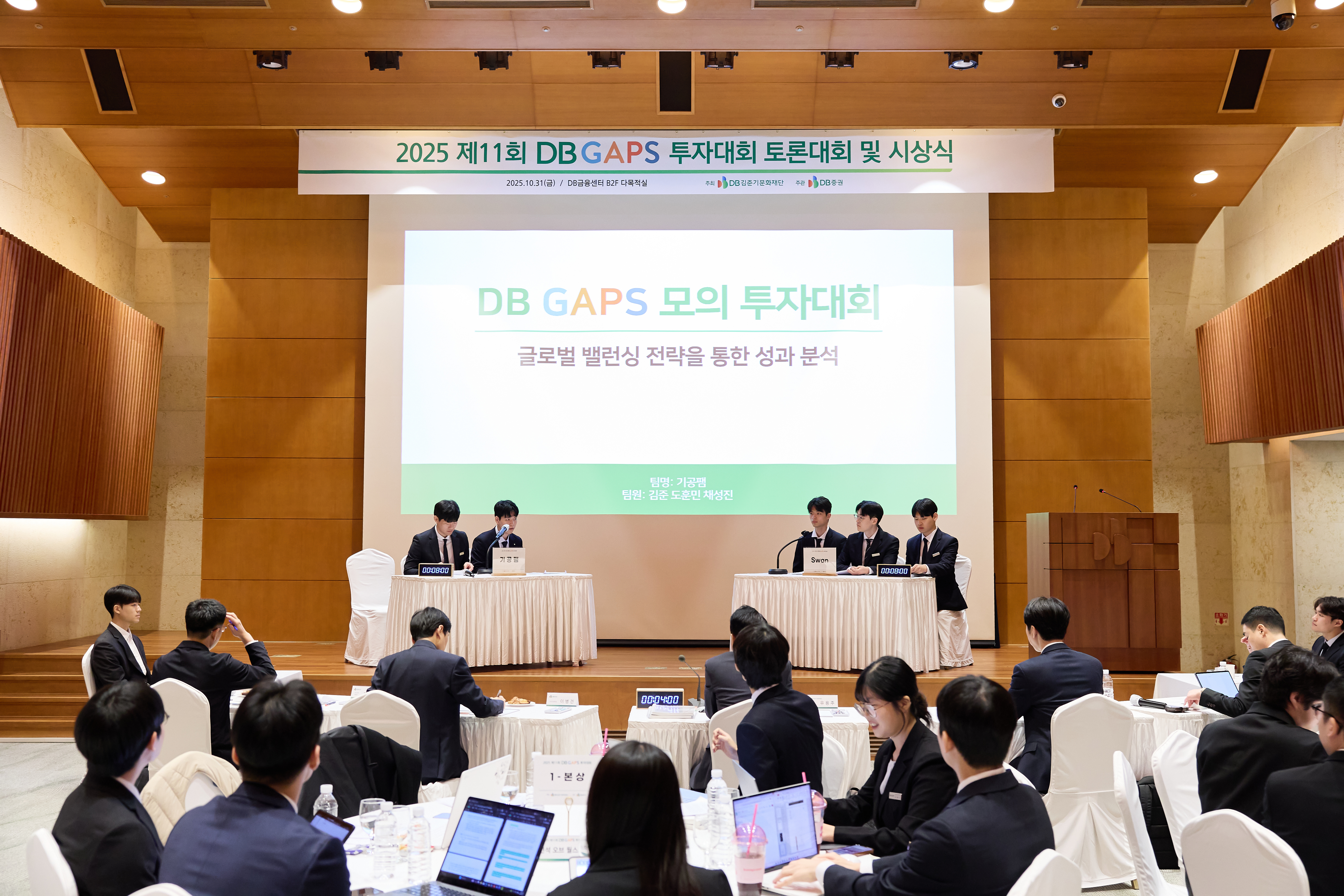 2025년 10월 31일, DB금융센터에서 ‘제11회 DB GAPS 투자대회 토론대회 및 시상식’이 열렸다. DB GAPS는 DB김준기문화재단이 주최하고 DB증권이 주관하는 국내 대표 자산배분 투자대회로, 대학생과 대학원생을 대상으로 건전한 투자문화 정착과 합리적 자산운용 사고력 향상을 목표로 한다.
