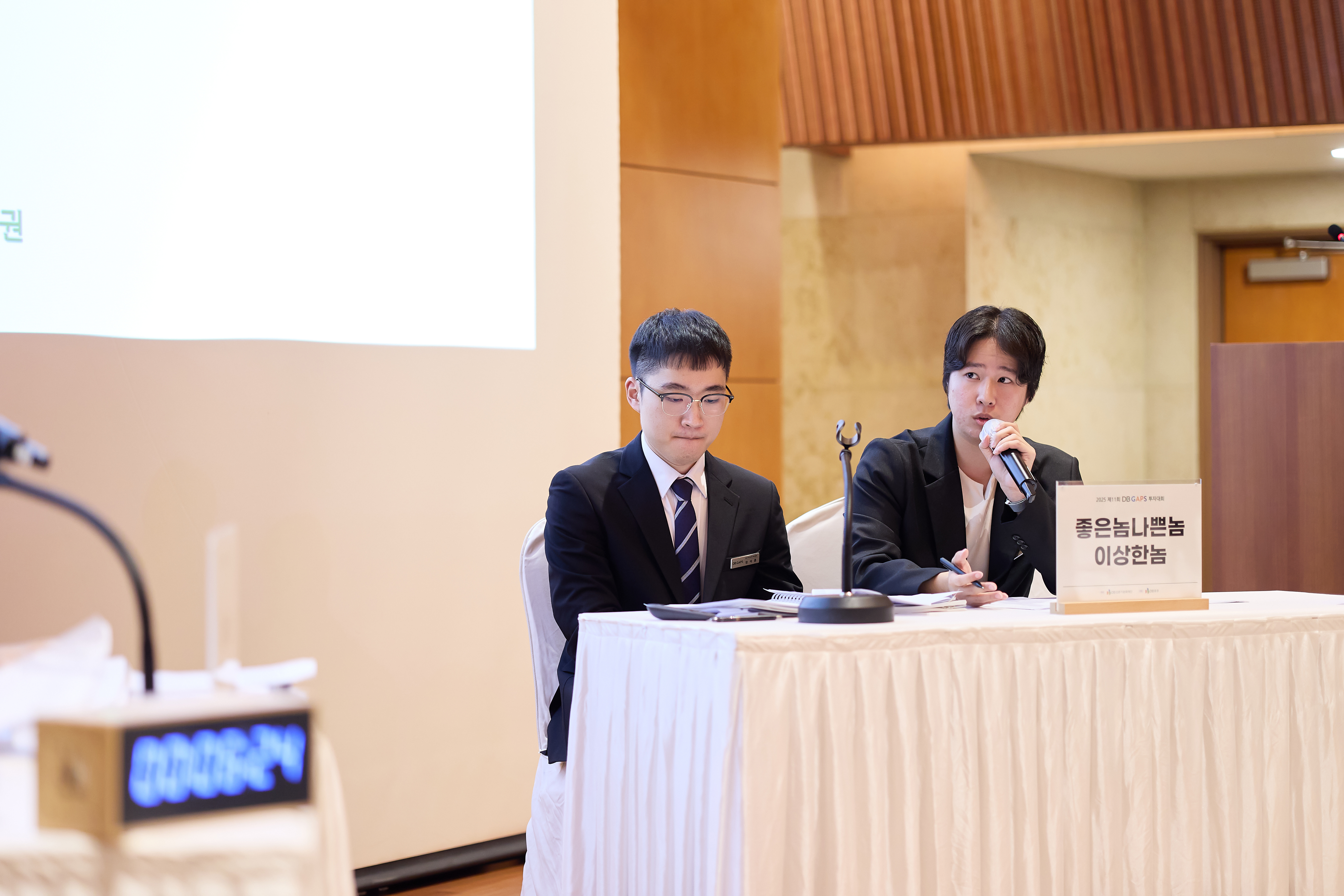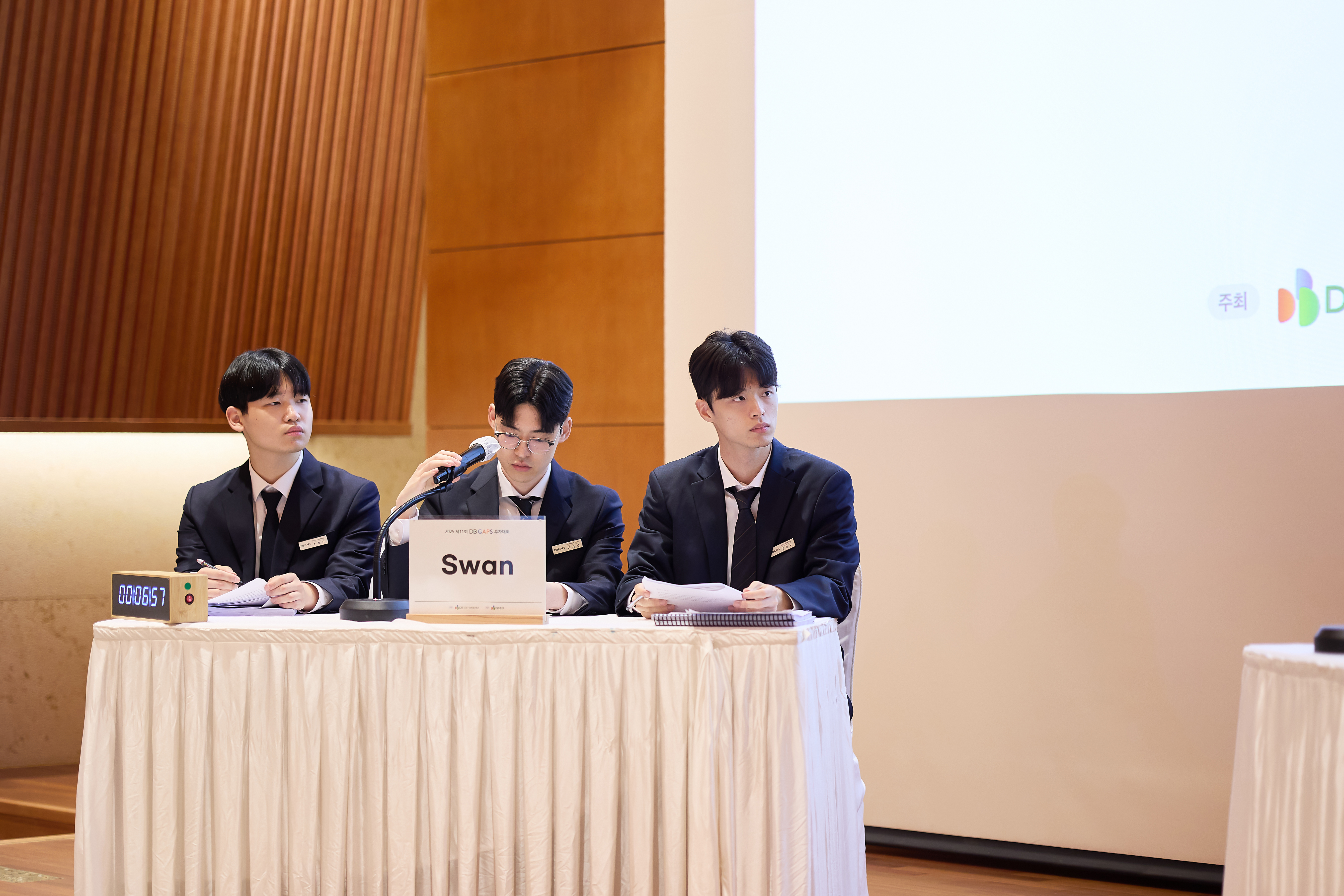특히 결승전에서는 ‘좋은놈나쁜놈이상한놈’과 ‘Swan’ 두 팀의 색깔이 더욱 뚜렷하게 드러났다. ‘좋은놈나쁜놈이상한놈’ 팀이 AI 산업에 집중한 모멘텀 투자 전략을 설명하자, ‘Swan’ 팀은 시장 변동성에 대비한 정량적 리스크 관리 접근을 제시하며 데이터에 근거한 안정적인 투자 방향을 강조했다. 두 팀의 주장이 맞서며 토론의 긴장감이 한층 높아졌다.
