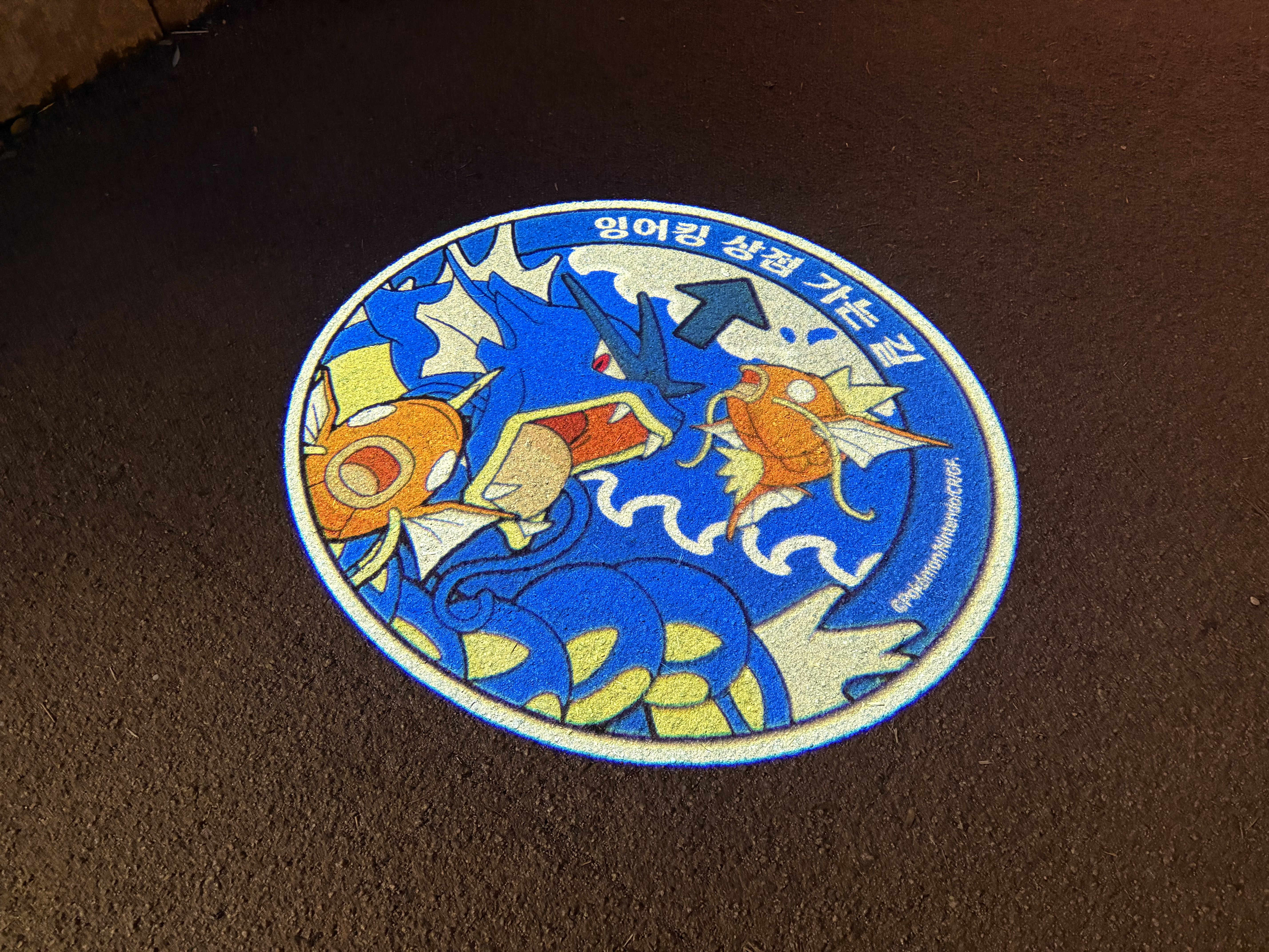 마침내 2025년 서울빛초롱축제의 하이라이트 구간, ‘I LOVE 잉어킹’입니다. 잉어킹은 예전 2000년대 인기 만화였던 ‘포켓몬스터’에 나오는 포켓몬 캐릭터인데요. 만화 속에선 약하기만 한 탓에 별 도움이 안 되지만, 시간이 지나 진화하게 되면 ‘갸라도스’라는 크고 힘센 용으로 강해지게 되는 특성이 있습니다.