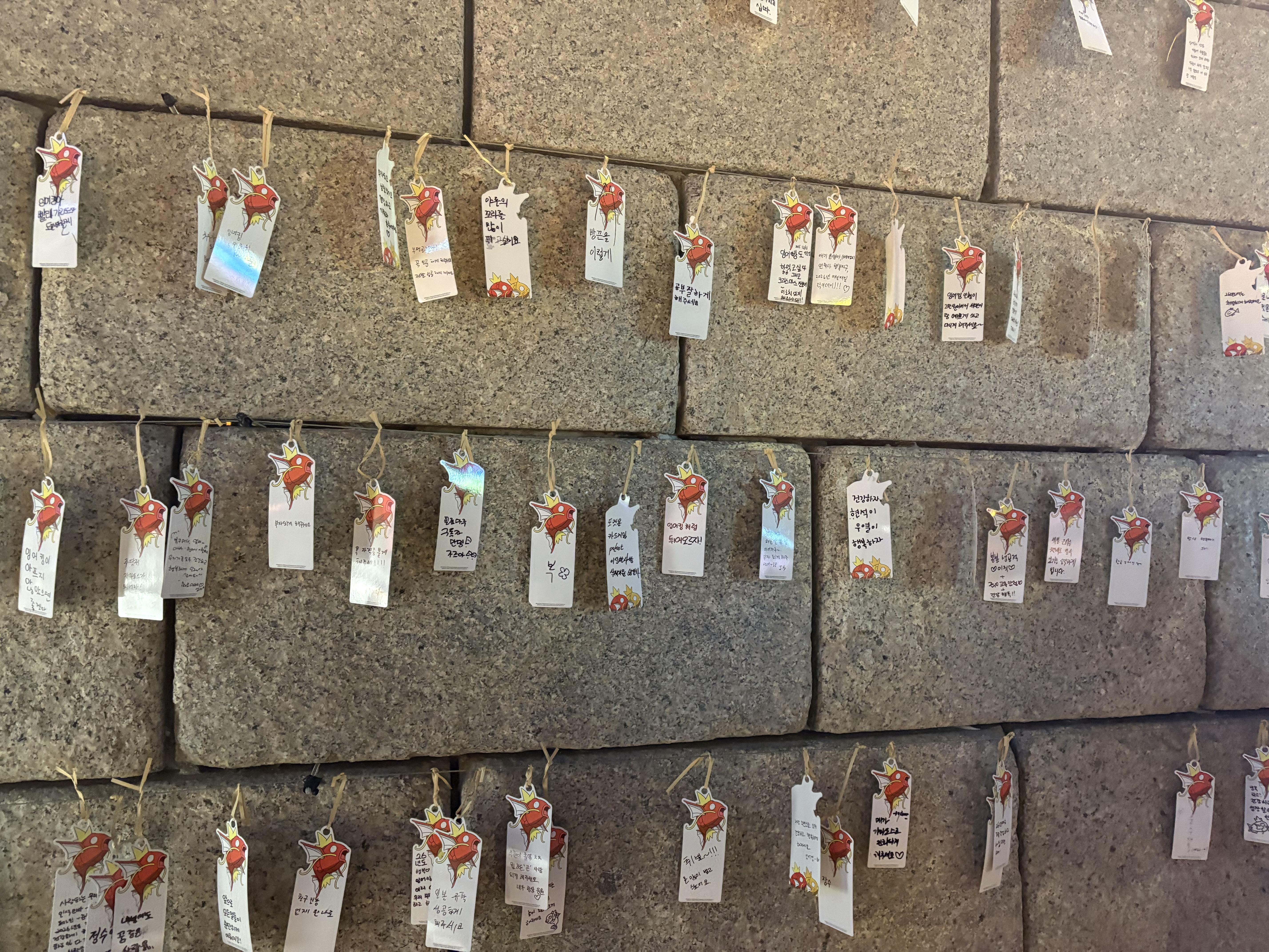 잉어킹과 관련된 다양한 즐길 거리들이 있었지만, 개인적으로 가장 인상 깊었던 것은 종이에 소원을 적고 벽에 거는 체험 프로그램, ‘잉어킹과 소원빌기’였는데요. 곧 크리스마스와 새해가 다가옴과 동시에, 희망과 소망을 상징하는 잉어킹과 함께 소원을 빈다는 게, 마치 소원 명소에서 소원을 비는 듯한 느낌이 들었습니다. 소원이 걸려진 벽을 지나치며 얼핏얼핏 눈에 들어왔던 소원의 대부분은 사랑하는 사람을 향하는 것이 대부분이었습니다. 막상 소원을 빌 땐, 저 역시도 자신보다 소중한 사람을 위해 소원을 빌었던 그 마음을 돌이켜보고, 그 마음만큼 소중하게 대해야겠다고 마음먹게 되는 순간이었습니다.
