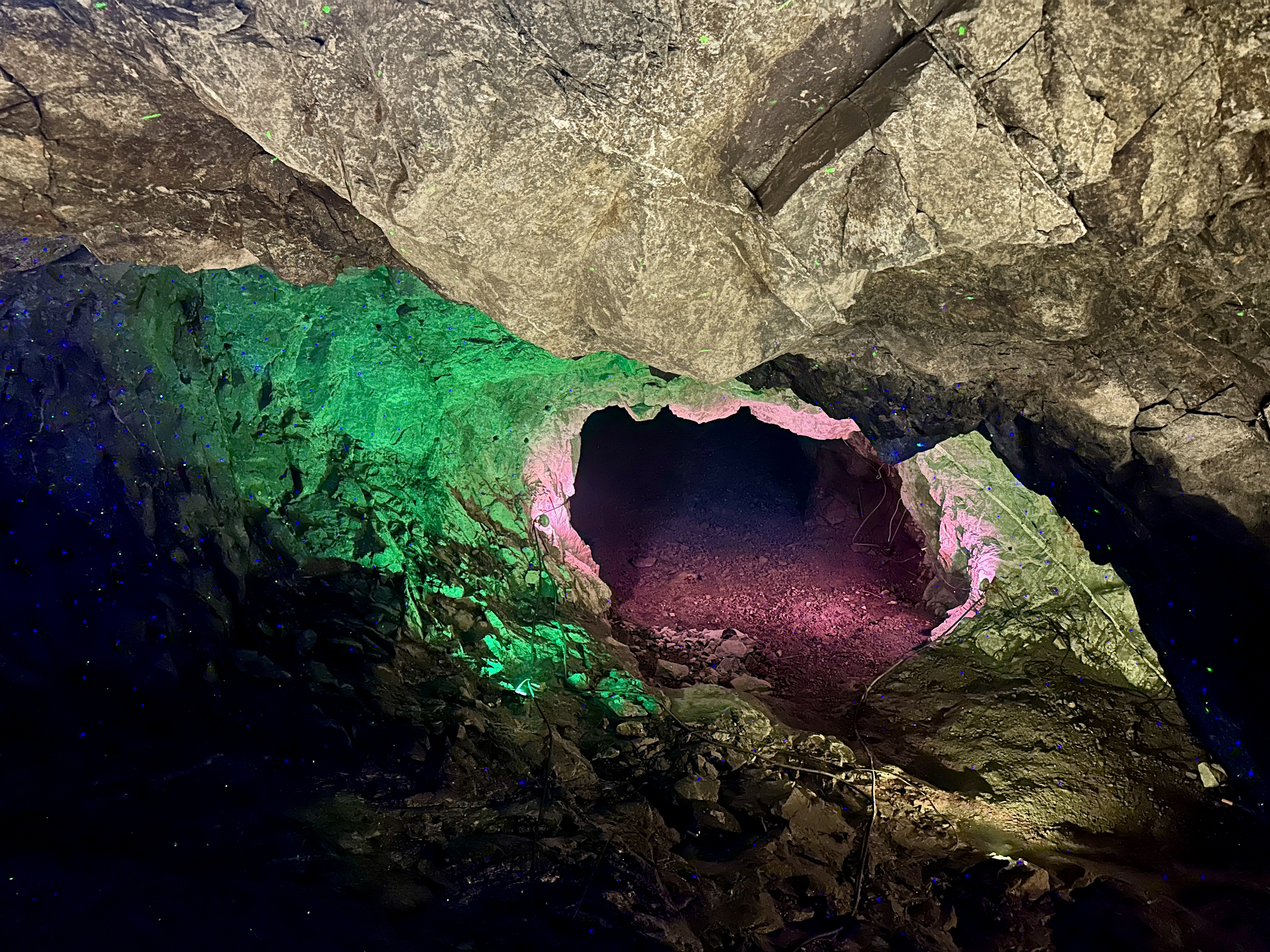 웜홀은 우주 공간에서 서로 다른 시공간을 연결하는 통로를 의미한다고 합니다. 광명동굴의 웜홀광장 역시 그런 이름처럼, 오래된 시간과 지금의 시간을 이어주는 경계처럼 느껴집니다. 동굴이 가진 원래의 신비로움 위에 조명이 더해지며, 이곳은 막연한 지하 공간이 아니라 조금은 판타지적인 풍경으로 다가옵니다. 어둠 속에서 암반을 따라 번지는 빛을 보고 있으면, 현실의 감각에서 잠시 벗어난 듯한 기분이 들기도 합니다. 마치 영화 속 다른 세계에 들어온 것처럼, 공간 자체가 하나의 장면처럼 느껴집니다.