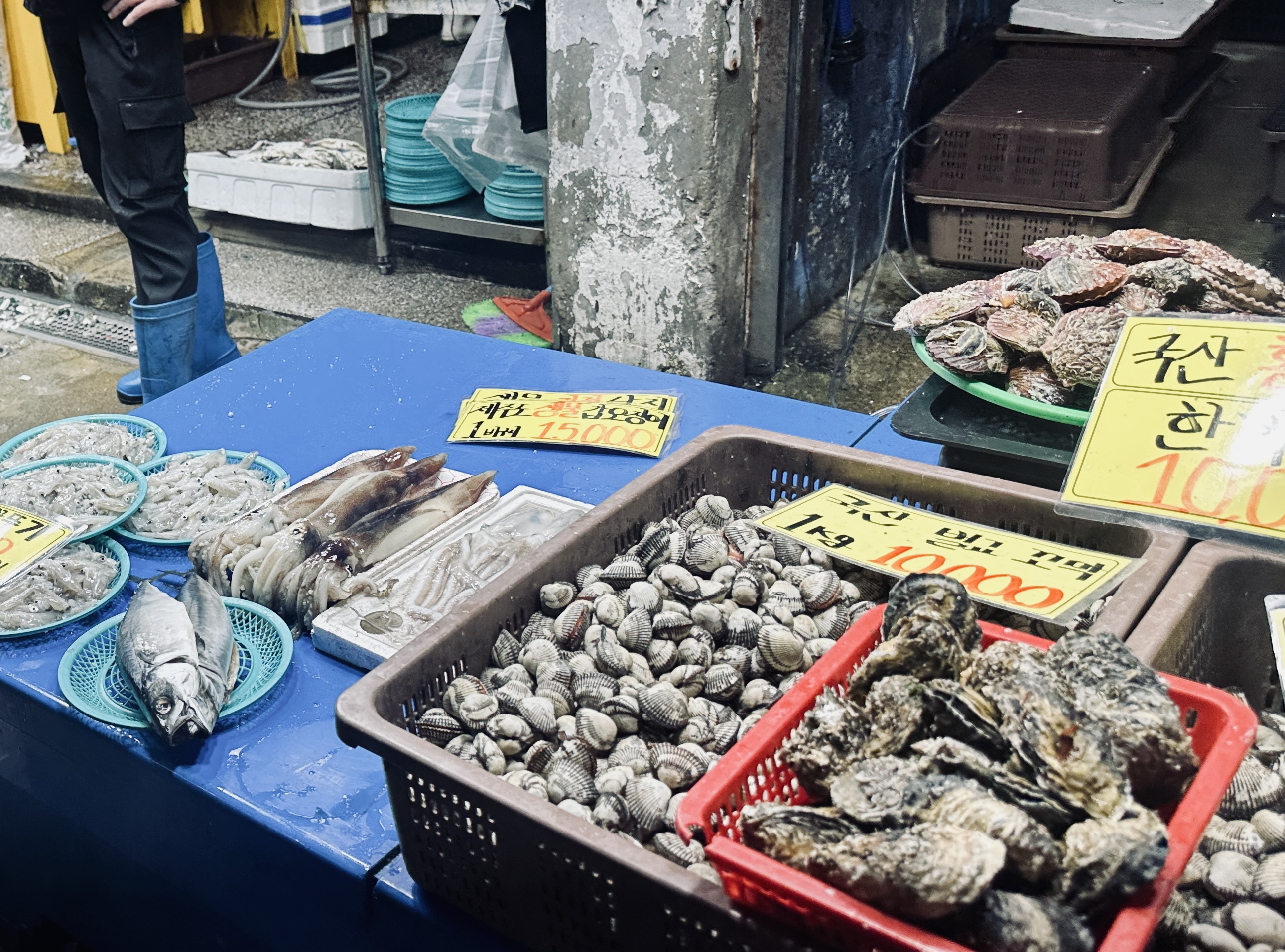광명 전통시장의 좁은 길목을 중심으로 쭉 늘어서 있는 매대들이 눈에 가장 먼저 띕니다. 주말 저녁인데도인지 주말 저녁이라 그런지 매대에 빼곡히 채워져 있는 장거리만큼이나 사람들도 북적거렸는데요. 오랜만에 활기찬 시장의 모습을 보니 가까운 광명이지만, 어디 멀리 유명한 전통시장에 온 것 같은 기분이 들었습니다. 시장답게 장거리가 무척이나 값쌌고 그 종류들도 정말 다양했습니다. 이곳에 있는 장거리들을 활용하는 법을 몰랐다는 게 정말 아쉬울 따름이었습니다.