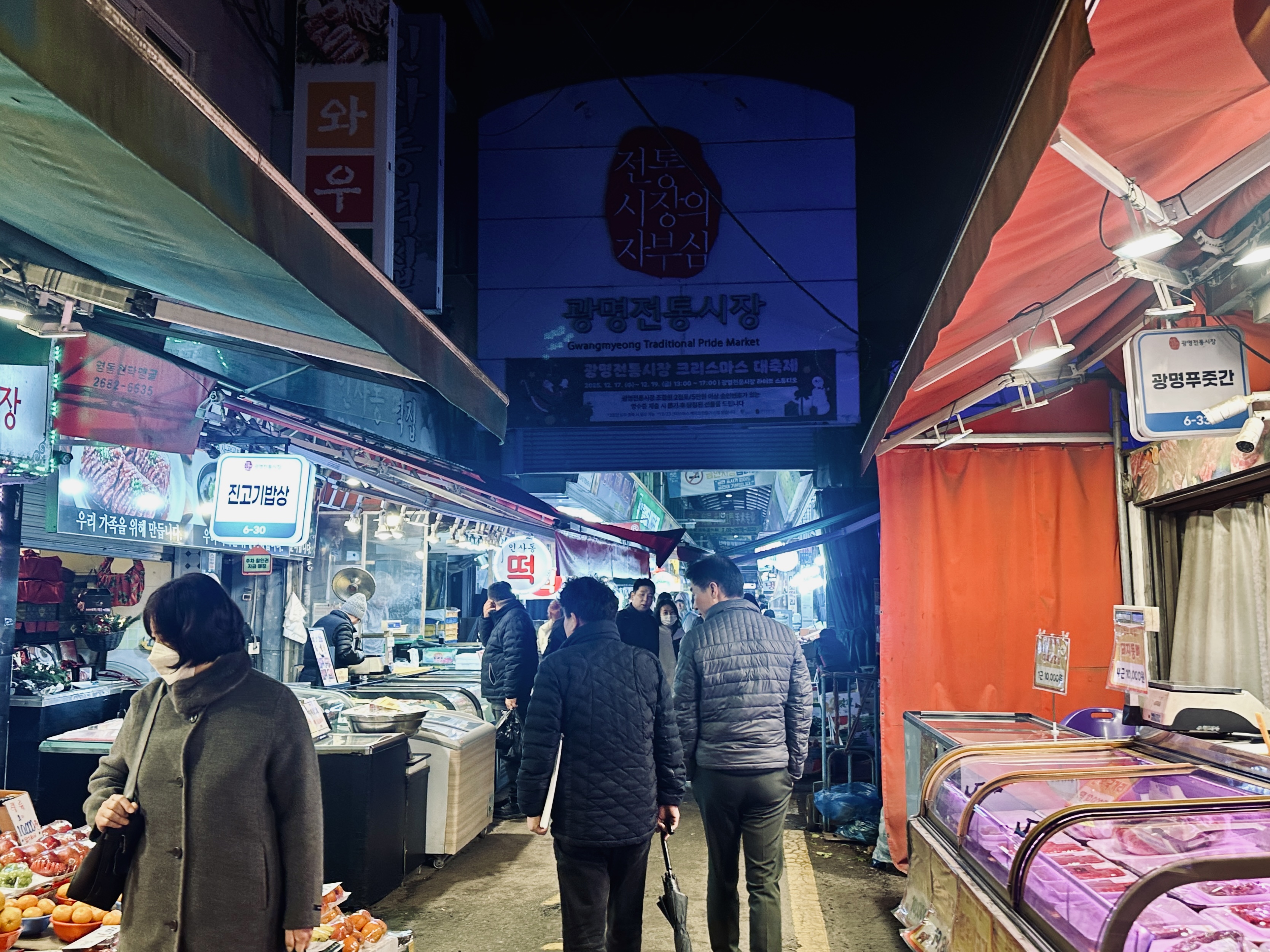 광명동굴을 즐겁게 끝마치고, 광명의 또 하나의 명물 광명 전통시장에 도착했습니다. 광명 전통시장을 보기 전까지의 광명에 대한 개인적인 느낌은 고층 건물과 기차역 등 신도시스러운 느낌을 갖고 있었는데, 전통시장 앞에서 그 모습을 마주하고 구수한 냄새들을 맡으니 사뭇 새롭게 느껴지며 정감마저 들었습니다.