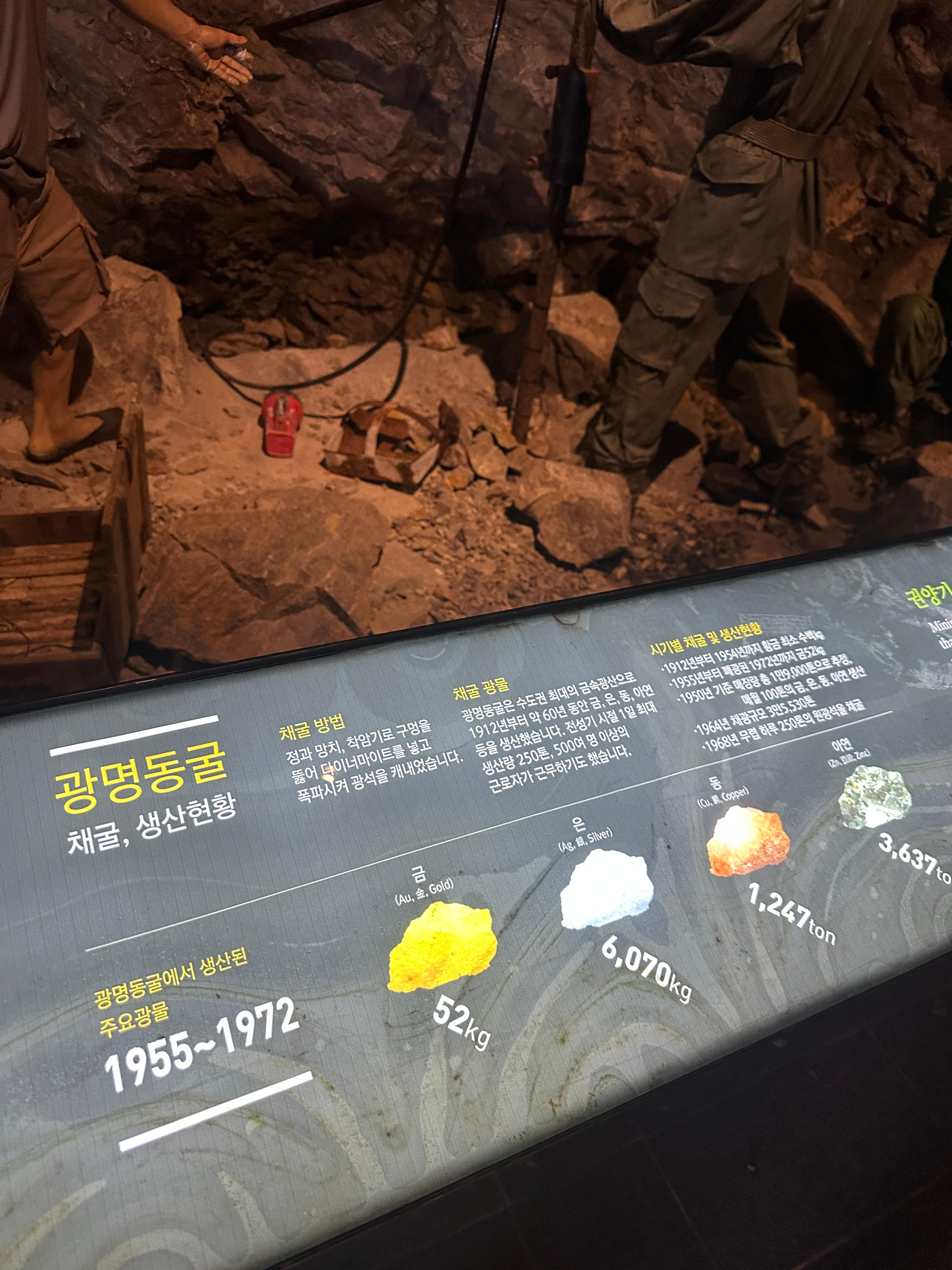 1955년부터 폐광 전, 72년까지의 채광된 광물량을 살펴보니, 의심과 놀라움이 밀려들면서 동시에, 머리속은 물음표로 가득 차게 됐습니다. 대한민국에 ‘이런 탄광이 있을 수 있나’부터 시작해서 지금보다도 기술력이 부족하던 시절, ‘어떻게 저 많은 양의 광물들을 캐고, 싣고, 날랐을까’, 또 ‘얼마나 자주 갱도 속을 들락거렸을까’와 ‘어떻게 이 동굴을 발견하게 됐을까?’라는 등등의 궁금증이었죠. 겉보기엔 그저 돌, 동굴일 뿐이지만 그 속을 헤집고 들어가 이만큼의 빛나는 가치들을 발견하고 끈기 있게 그 의지를 실행시킨 우리 선조들을 떠올리며 왠지 모르게 한국인로서의 자긍심이 샘솟았습니다.