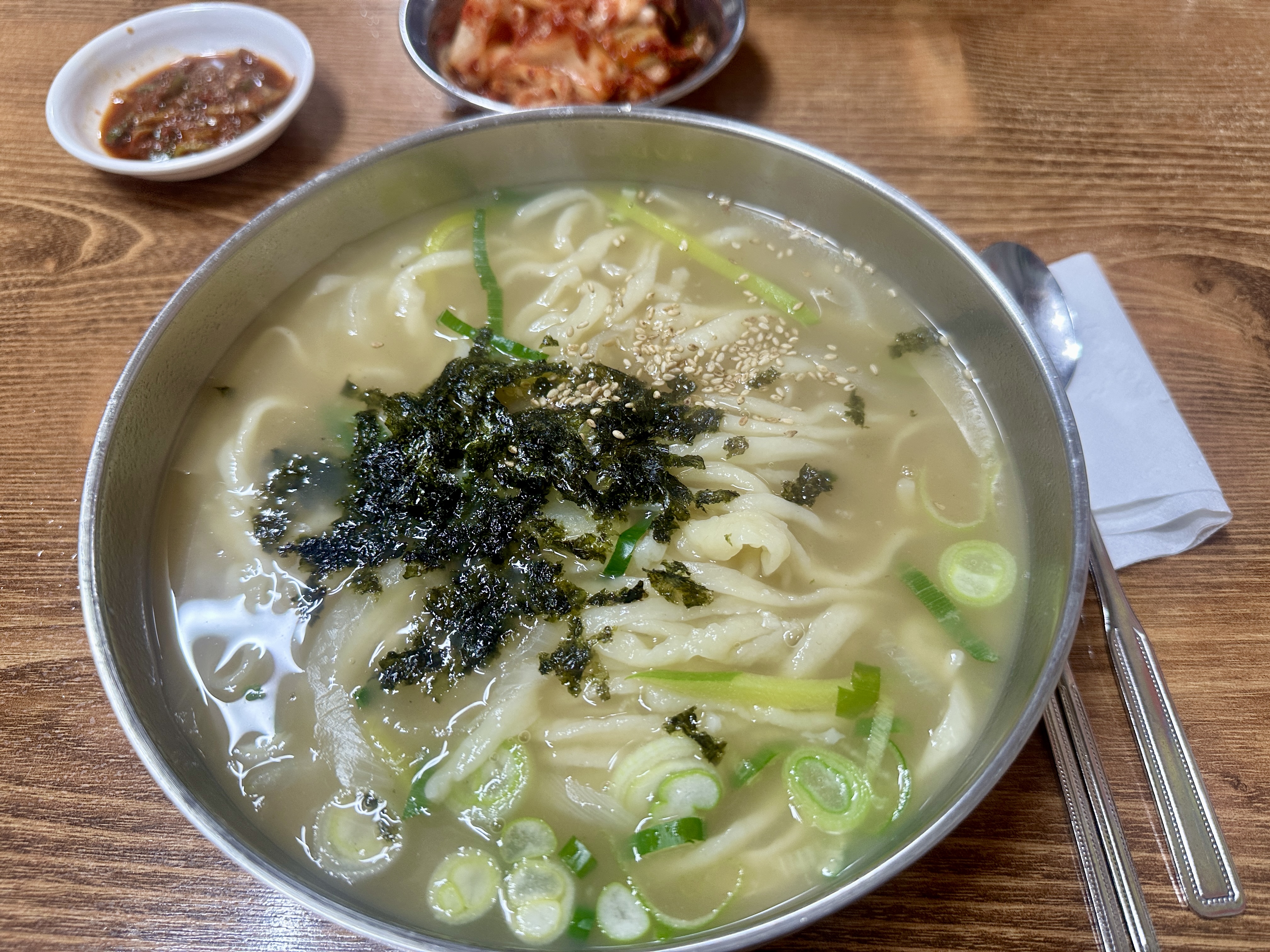역시 맛집답게 메뉴는 단 2가지, 개인적으로 생각하는 맛집의 기준은 ‘단일메뉴’라 메뉴가 단출한 걸 봤을 때, 이곳은 맛집임이 틀림없다고 생각했었습니다. 그렇게 주문을 하고 칼국수를 먹었는데, 국수를 먹기보다 국수가 입안으로 스스로 빨려드는 것 같은 느낌이 들었습니다. 식사 양이 적은 것도 아닌데, 국수의 끝은 도무지 보이지 않았습니다. 처음 나온 그대로의 상태로 간간하면서도 담백하게 즐기다, 변주를 주고 싶으면 양념장을 함께 풀어 매콤한 맛을 더했습니다.