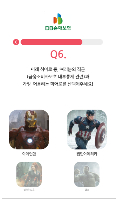 “재미있는 점은 맡은 업무에 따라서 선택하는 히어로 캐릭터들이 달랐다는 거예요. 영업직군은 아이언맨을 많이 선택했는데요. 리더십이 강하고 빠른 상황 판단과 추진력을 갖춘 아이언맨의 이미지가 영업직과 잘 어울린다고 본 것이죠. 보상직군은 캡틴아메리카를 많이 선택했어요. 우리는 소비자를 보호해야 하는 임무가 있고, 그래서 규율과 원칙을 우선으로 하는 캐릭터를 선택한 거예요. 또 IT직군은 자비스를 선택했는데요. 고객에게 최적의 서비스를 제공해 정보와 시스템을 기반으로 업무를 수행할 수 있도록 돕는 것이 우리 역할이고 시스템적으로 우리는 전략적 파트너라고 이야기했습니다.”
