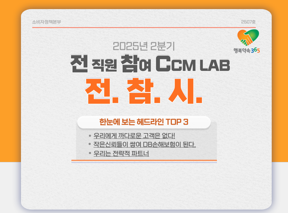 양호진 책임은 “새해에도 소비자보호기획파트는 직원들에게 지속적으로 눈에 띄고 자꾸 생각하게 만드는 활동들을 계획하고 있습니다. 2025년에는 기본편이었다면, 2026년 1분기에는 실무편으로 일상적인 소통과 관심 속에서 자연스럽게 CCM이 뿌리내릴 수 있도록 더욱 촘촘하게 활동해 나가려고 합니다”라고 포부를 밝혔다.