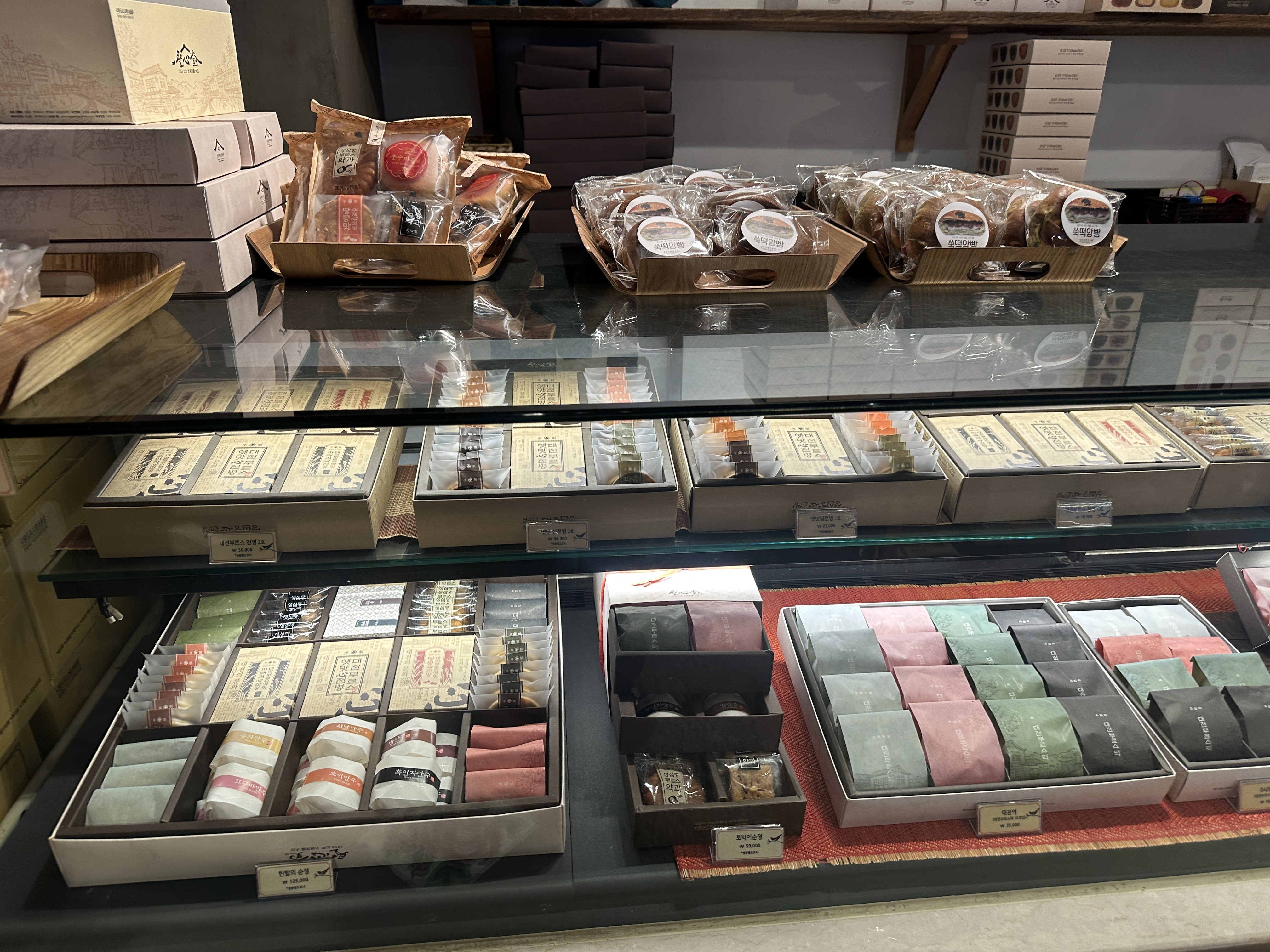 붐비는 매장 안에서도 묘하게 정돈된 분위기, 그리고 서두르지 않는 손길들이 가장 먼저 시선을 사로잡았습니다. 이 모습은 건너편에 위치한 성심당과는 사뭇 다른 모습이었고, 제품을 고르는 시간조차 왠지 모르게 느긋하게 흘러가는 것 같았습니다. 옛 맛을 담아낸 만큼 서둘러 고를 수 없었기 때문일까요? 아니면 옛맛을 선물할 누군가를 생각하면 신중해질 수밖에 없었기 때문이었을까요? 어떤 이유에서든지, 이곳에 있는 누구든 맛에 대한 의심은 전혀 갖고 있질 않는 듯 보였습니다.
