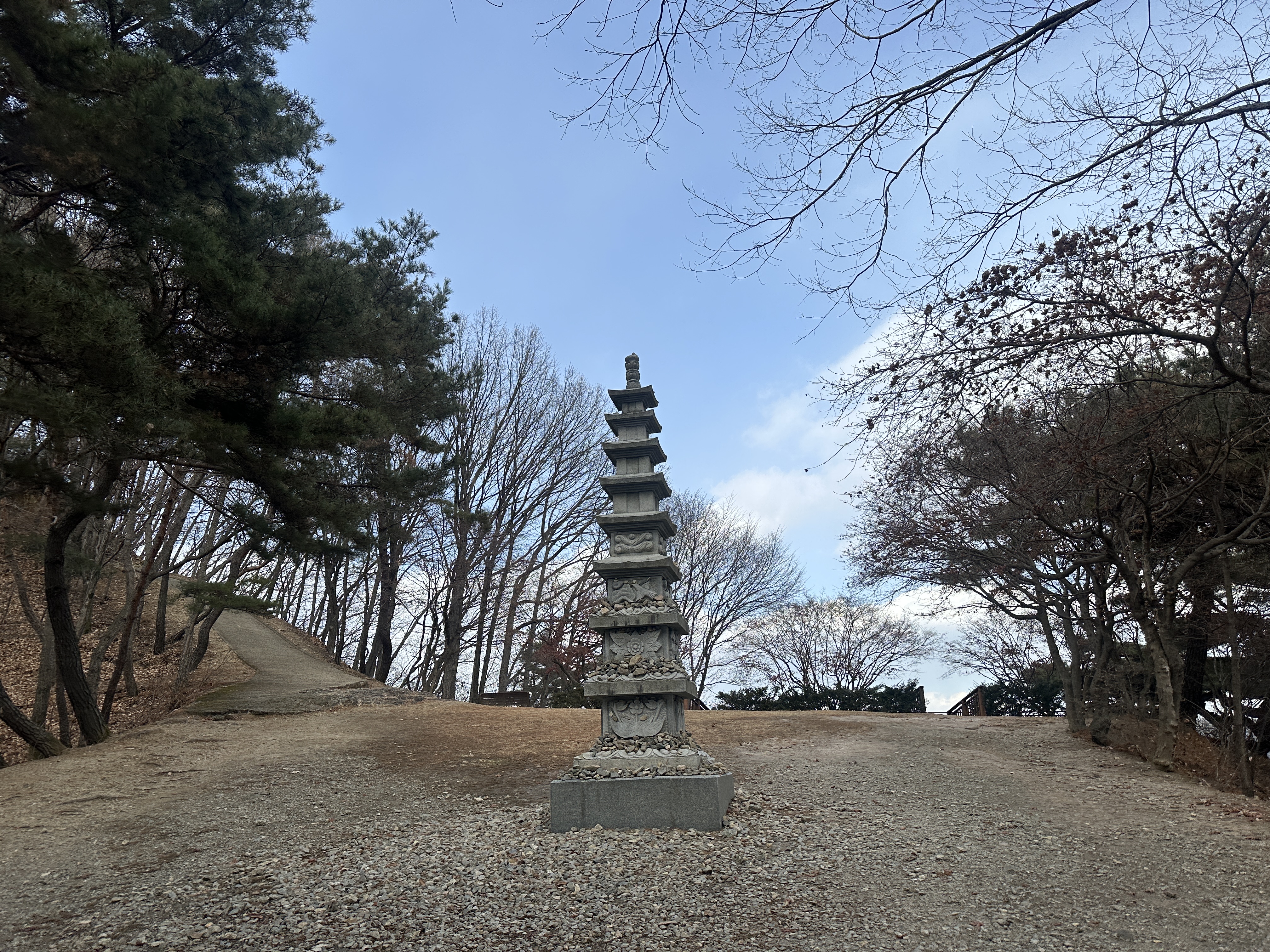 자연휴양림 길의 막바지 코스 바로 전, 전혀 예상치 못하게 돌탑을 마주했습니다. 장태산에 있는 메타세콰이아 나무들처럼 우뚝 솟아 있는 돌탑이었습니다. 설명이 나와 있지 않아서 어떻게, 어떤 의도로, 누가 만든 지는 알 수 없었지만 무언가 신비한 힘을 갖고 있을 것만 같고 좋은 기운을 북돋아 주기 위해서 만들었을 것 같다는 생각을 하게 됐습니다. 아니나 다를까, 돌탑의 한 층 한 층마다 방문객들이 소원을 빌었던 흔적들이 가득했습니다. 저 또한 새해를 맞이해서 그동안 갖고 있던 소원을 빌어 돌탑의 한 층에 자그맣게 올려두고 왔습니다.
