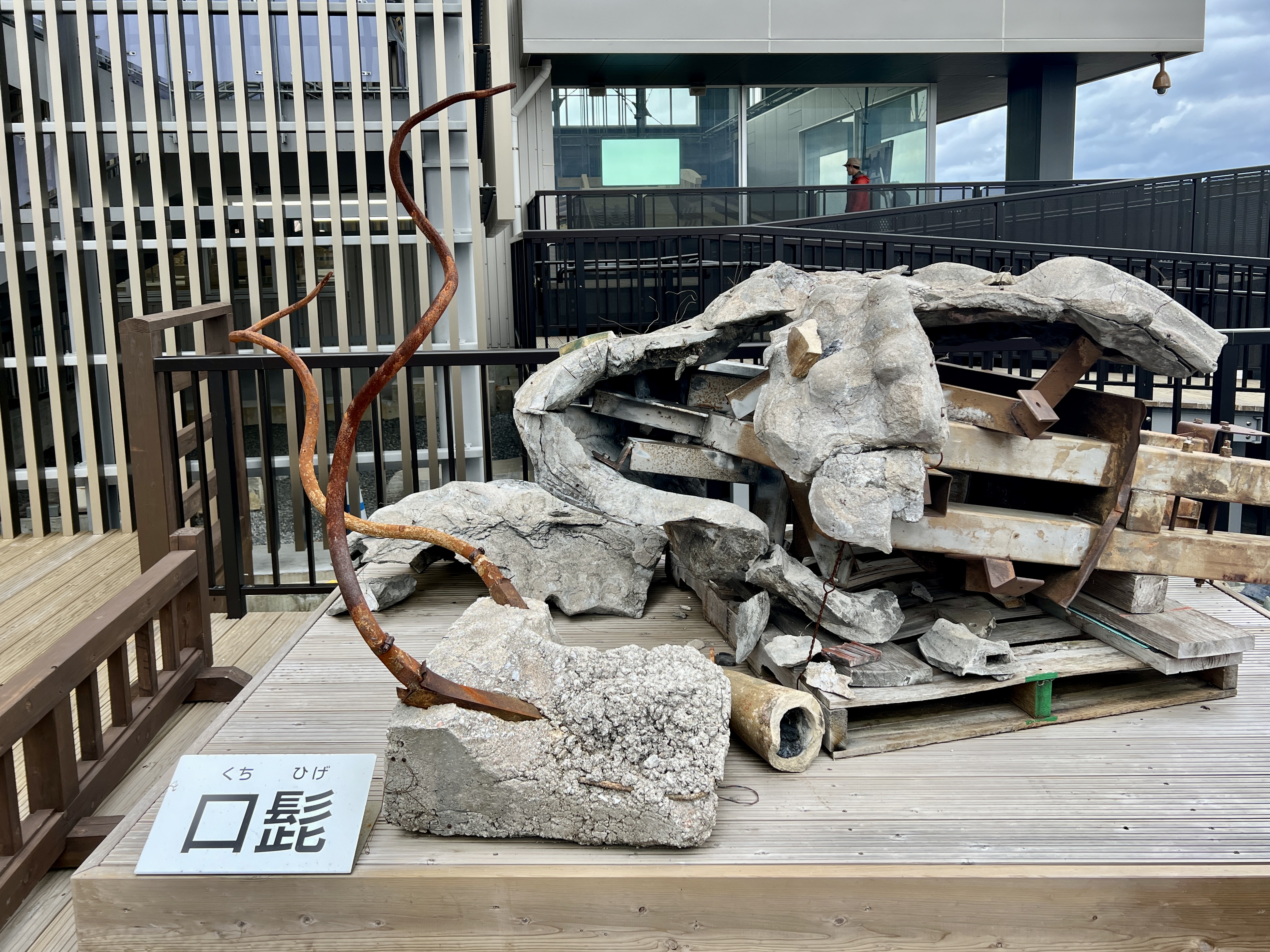 지붕에는 여러 도자기를 조합해서 만든 거대한 용머리 용마루 장식이 있었는데요. 용 장식에 사용되었던 철제 프레임의 일부분도 볼 수 있어요.