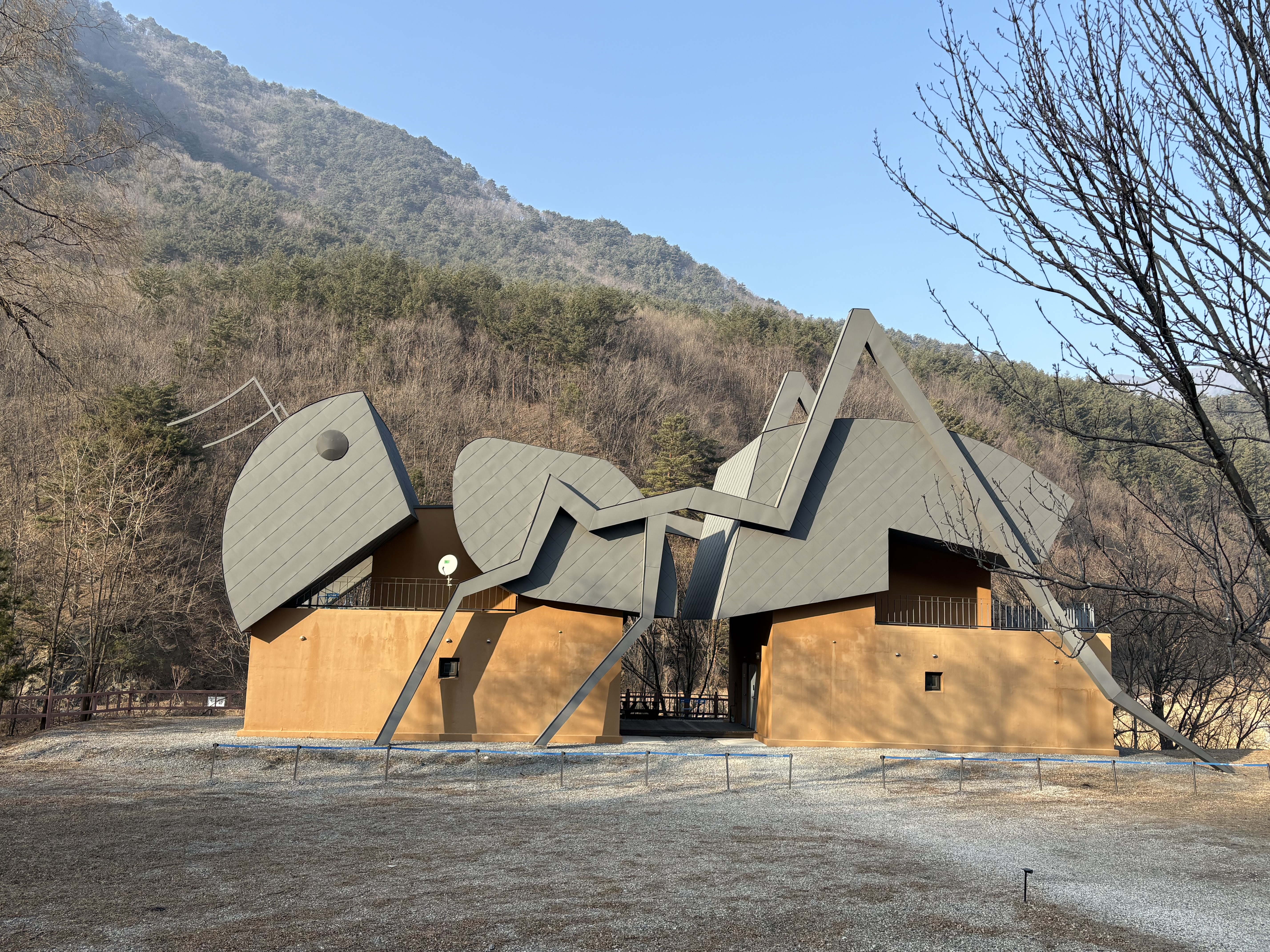표를 끊고, 승차 시간이 될 때까지 레일바이크 출발지를 구경했습니다. 여치로 된 카페와 나비 모양의 화장실 그리고 개미 모양의 펜션까지 곳곳에 보였죠. 레일바이크와 무슨 연관이 있을까 해서 더 살펴보았더니, 근방에 곤충 테마파크인 벅스랜드가 있었습니다. 아마 그 때문에 곤충 모양의 건축물들이 자리 잡고 있었던 것 같습니다. 제가 방문했을 당시에는 운영을 안 하고 있어서, 직접 경험해 보진 못했지만 건축물들만 보더라도 신기하고 재밌게 느껴졌습니다.