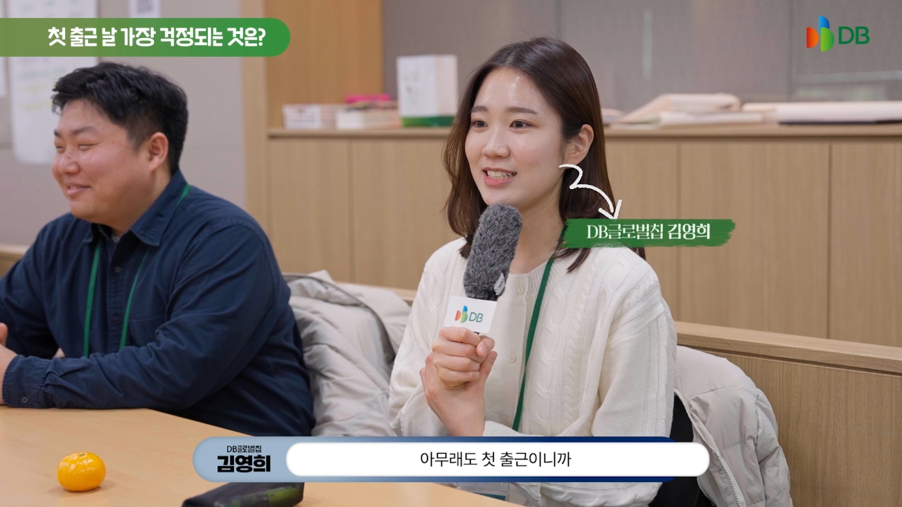 [DB글로벌칩 김영희] 아무래도 첫 출근이다 보니 잘하는 것도 못 해서 횡설수설할 것 같은데… 되게 긴장이 많이 될 것 같습니다.