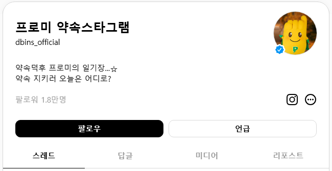 바로가기 ▶ https://www.threads.com/@dbins_official (팔로워 1.8만명)
