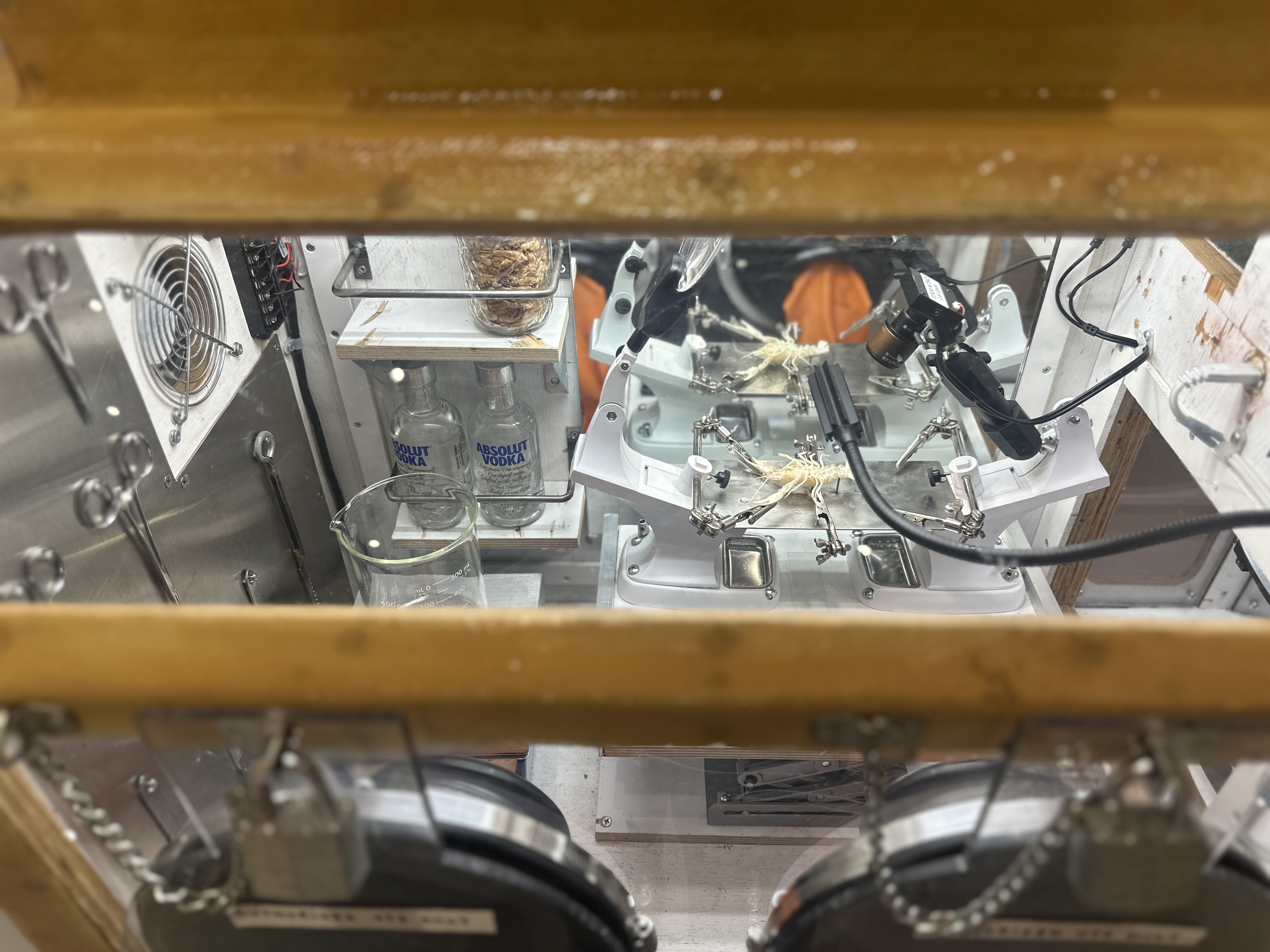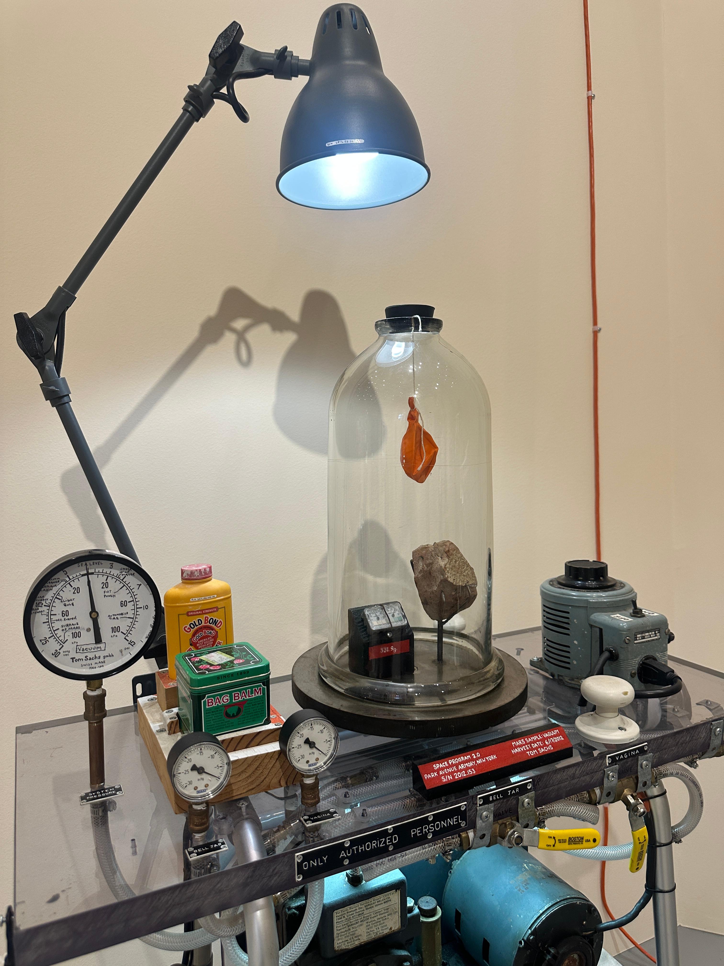 새우 모형으로 외계 생명체를 해부하는 듯한 장비를 만들어낸 장면은, 이번 전시에서 가장 기발하고도 인상적인 순간 중 하나였습니다. 정교하게 꾸며진 조명과 장비 배치, 그리고 실험실의 분위기를 그대로 옮겨놓은 세팅 덕분에 금방이라도 외계 생명체의 조직을 분석하는 임무가 시작될 것 같은 느낌이 들었어요.